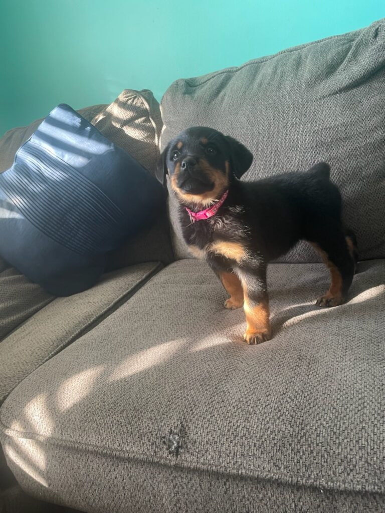 This beautiful female Rottweiler is the perfect combination of strength, intelligence, and loving temperament. Raised in a clean, structured, family-oriented environment, she is well-socialized and already showing excellent confidence and personality.