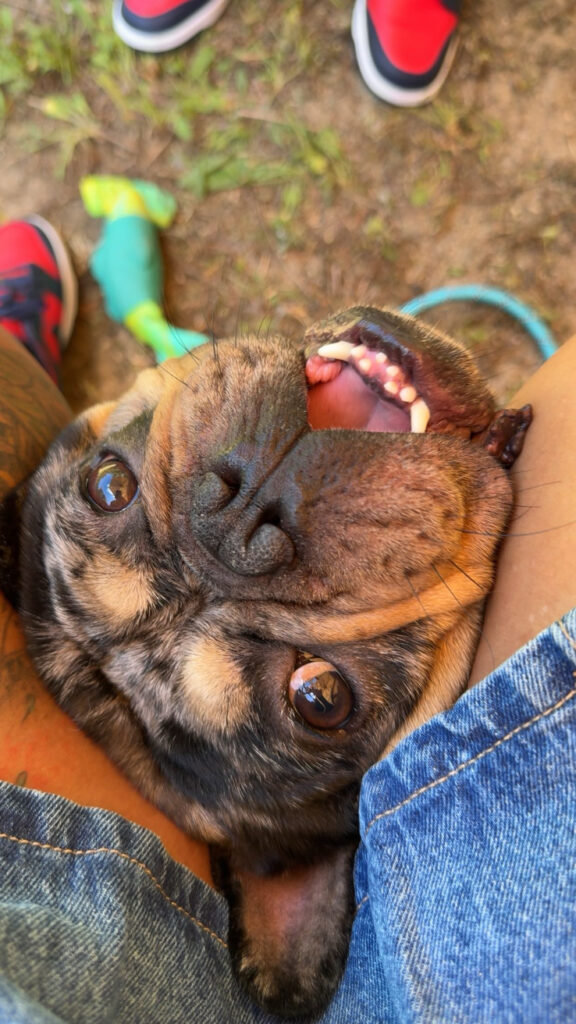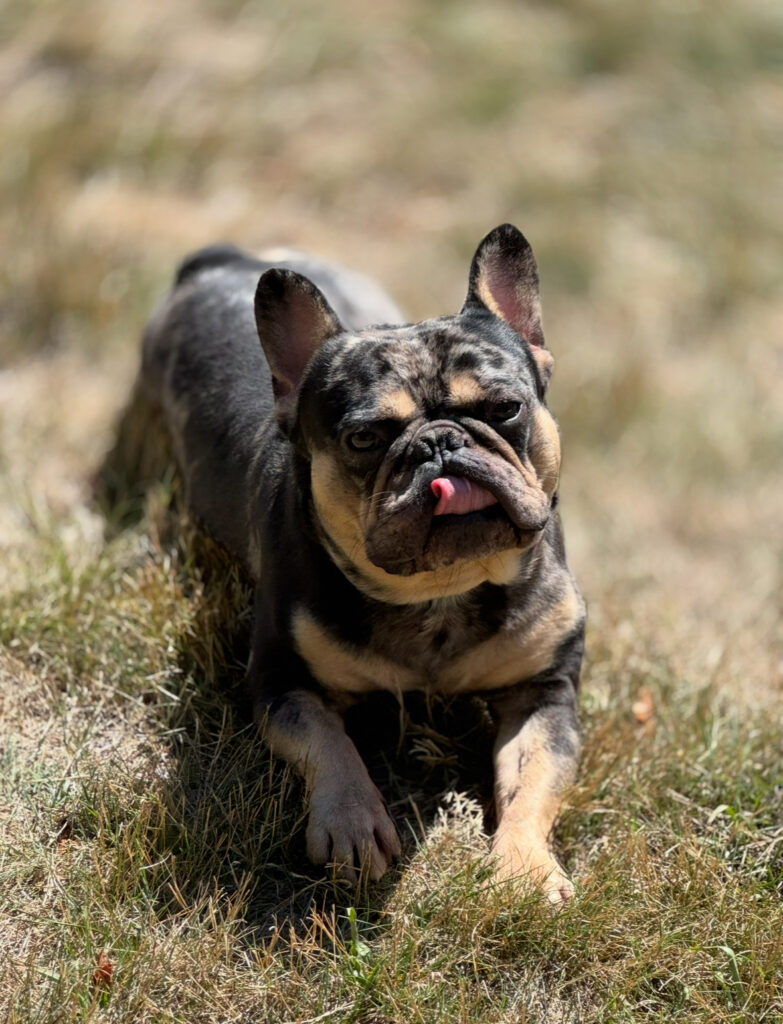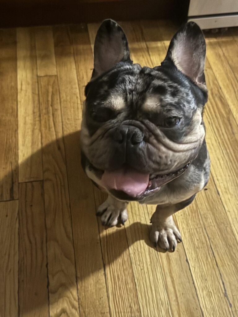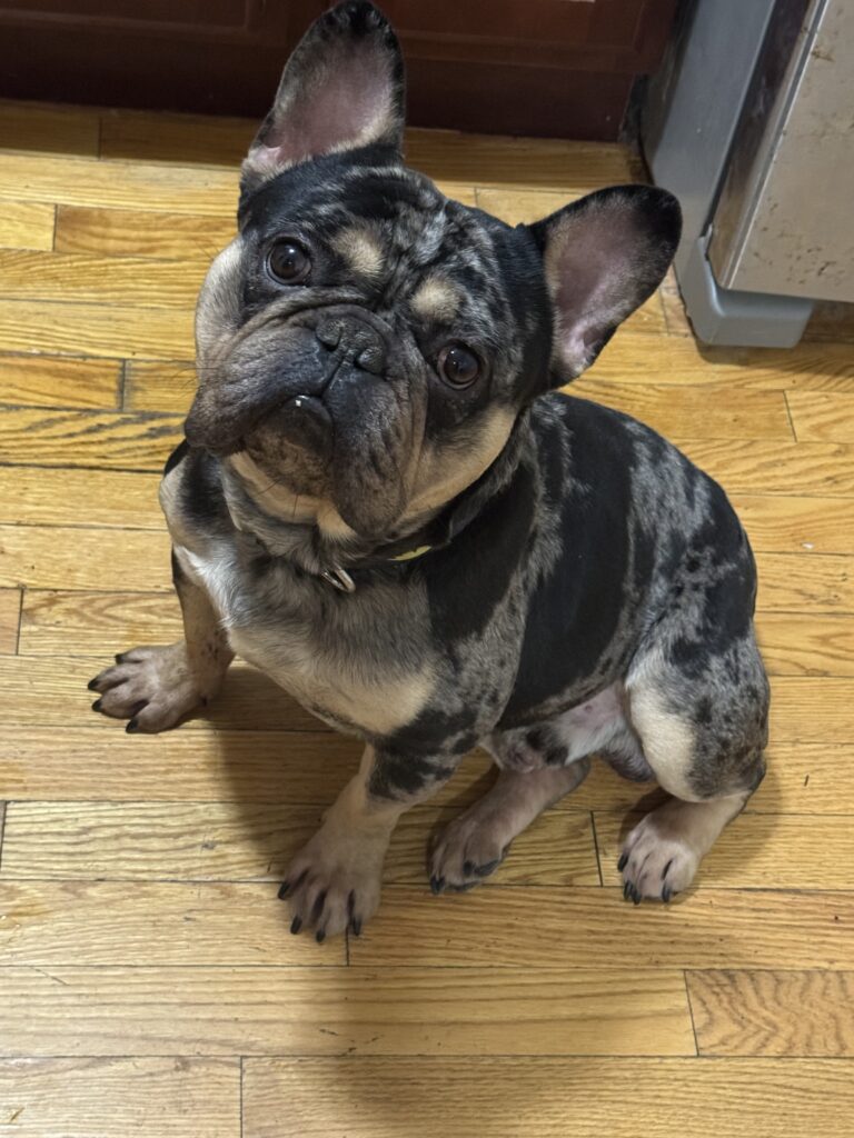 Rambunctious fun loving 2 year old frenchie. Great with UTD on vaccines including recent rabies, housebroken and crate trained. Gets along with dogs, cats and birds.  Not neutered. Microchipped with registration paperwork (if you decide to register)Quirky personality, loves to cuddle and sun bathe. No known allergies.