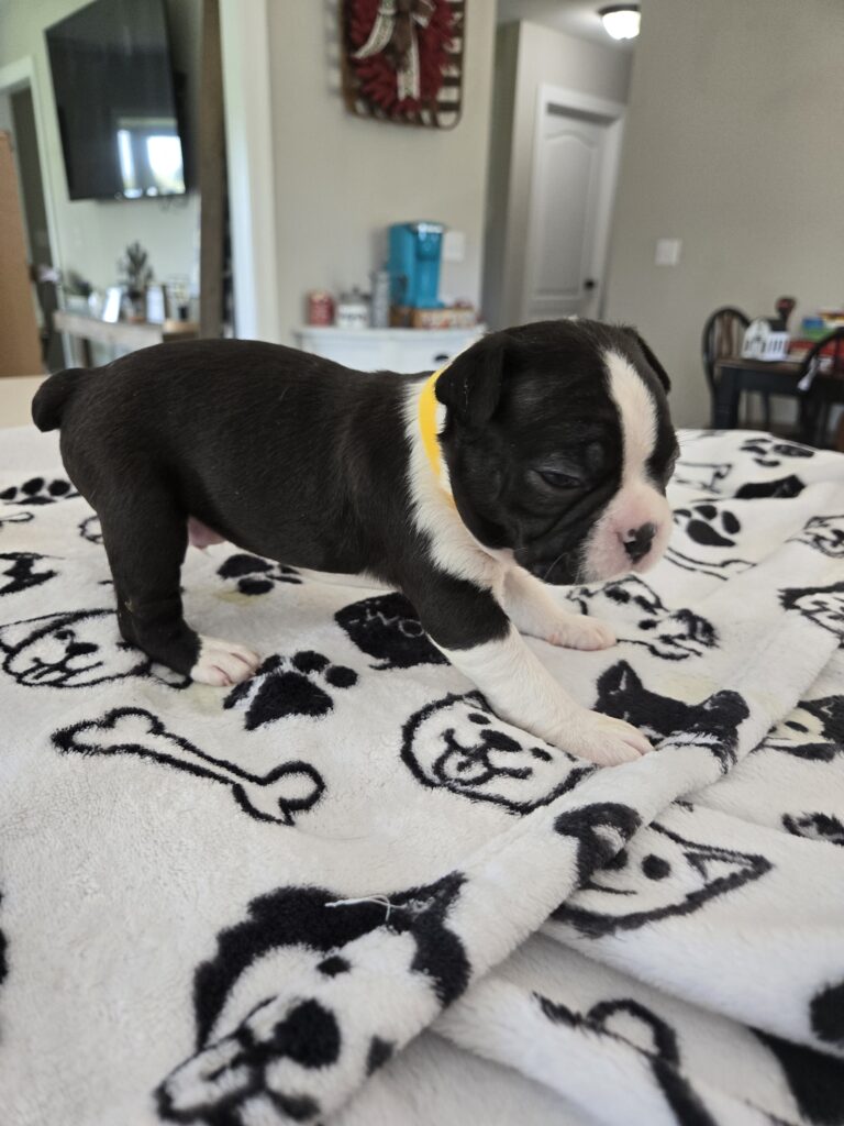 I have 5 beautiful, marked male Boston Terrier pups that have full CKC papers. The mom is black and white, and dad is liver and white. They are well taken care of, and I make sure they are social. Mom and Dad are great dogs and I am looking for a home that will love and take care of them. They are special. I have sold both my females and have 5 males left and boy are they pretty. Call or text 8048153407 will be glad to send videos and pictures. The first picture is mom and dad. They are dewormed at 2,4,6,8 weeks and all shots before they leave. They are playful and full of kisses. I live in Water View, Virginia 23180.Â