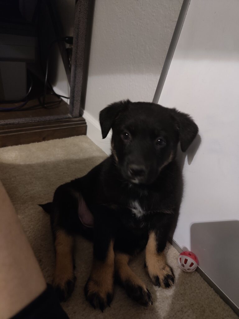 Sadie is a sweet, playful, affectionate puppy looking for a loving home. She is 2/4 Australian Shepherd, 1/4 German Shepherd, and 1/4 mix of Border Collie, Golden Retriever, and Rottweiler.