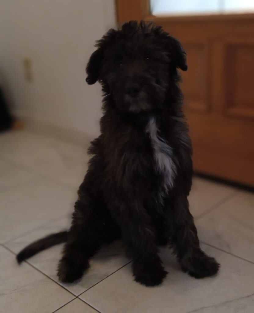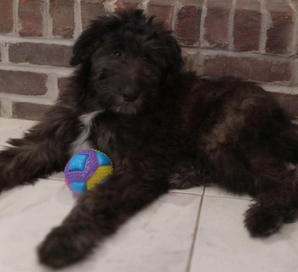 Charlie loves people! He is super easy-going, gentle, and affectionate! He is also calm, and cuddly. He is especially eager-to-please and great at learning tricks. He was the quickest in the litter to learn to “sit” and “lay”. He enjoys sitting on your lap and is amazing with children. His coat is a handsome soft Merle. Charlie recently completed his final set of puppy shots at the vet!