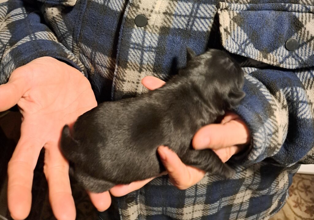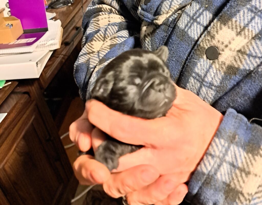 Tammy was born January 1st she is a black female pug puppy registerable with AKC. Mother is a AKC registered brindle pug father is a black AKC registered pug with grand champion back 4 generations. Tammy will receive 1st distemper shot and a vet exam before she leaves.