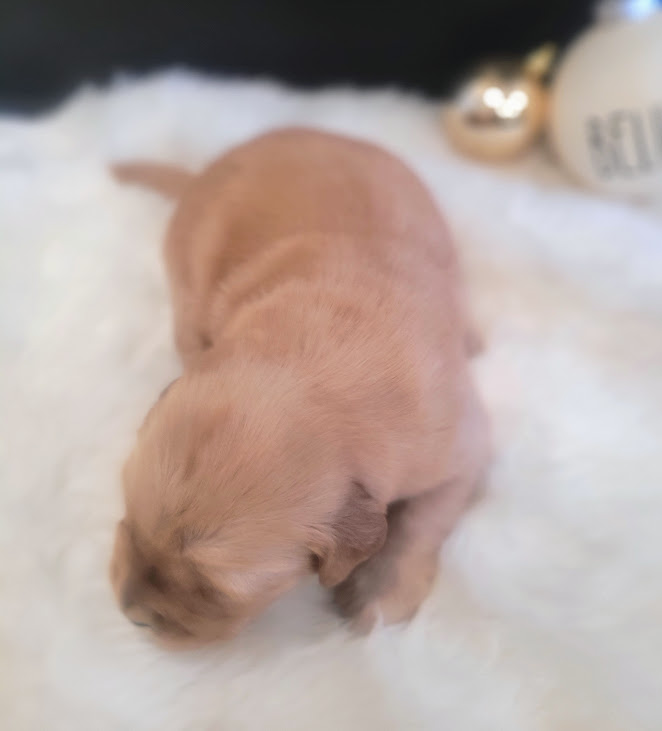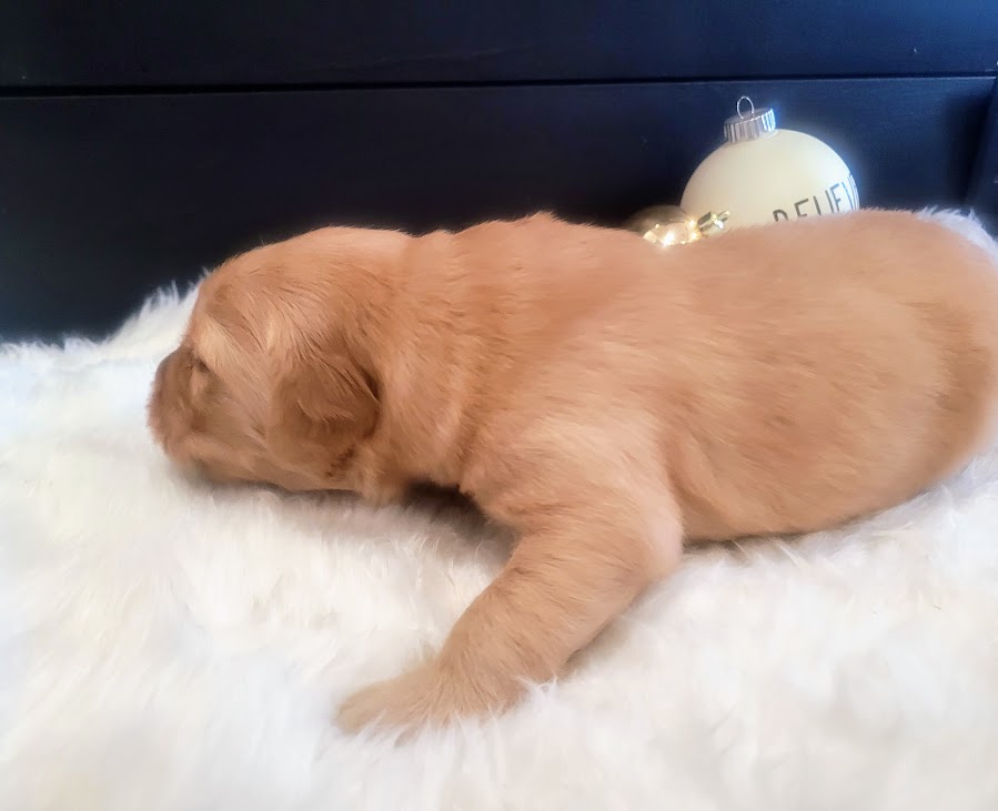 Meet Atlas, an adorable curious little pup. He’s a bright and confident boy, already showing classic Golden charm and affection. He’s been carefully bred with a deep focus on health and temperament, ensuring each pup grows into the loyal, gentle, and well-balanced companion this breed is known for. Every litter is born and raised inside our home, where puppies are surrounded by daily household life, loved-on from day one, and exposed to all the experiences that help shape confident, people-oriented dogs.