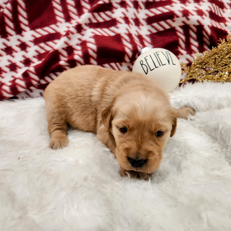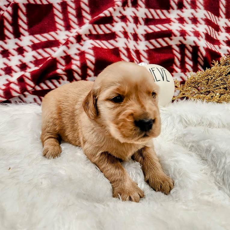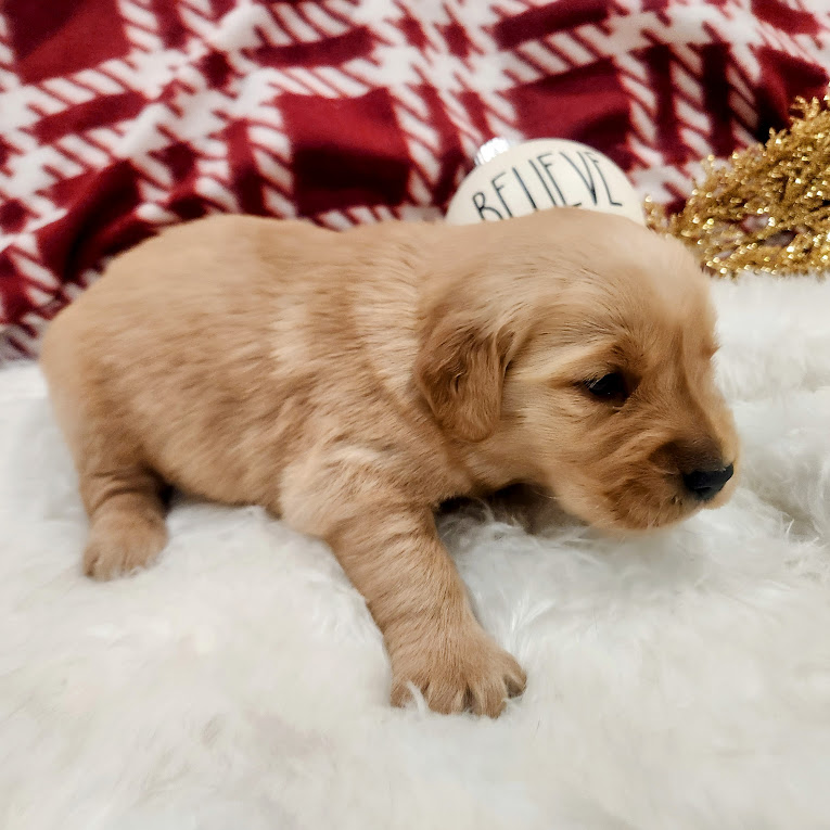 Meet Atlas, an adorable curious little pup. He’s a bright and confident boy, already showing classic Golden charm and affection. He’s been carefully bred with a deep focus on health and temperament, ensuring each pup grows into the loyal, gentle, and well-balanced companion this breed is known for. Every litter is born and raised inside our home, where puppies are surrounded by daily household life, loved-on from day one, and exposed to all the experiences that help shape confident, people-oriented dogs.