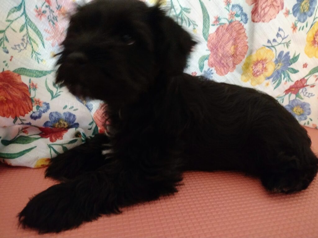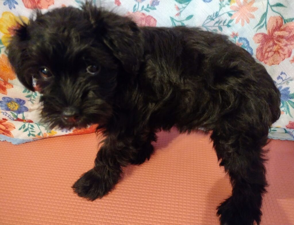 AKC Miniature Schnauzer black color male puppy. He was born 09/26/2025. He has had his tail docked and dewclaws removed also he has had his shots and worming done. His father is a AKC Miniature black and white parti color Schnauzer and his mother is a AKC Miniature black color Schnauzer. His father weighs 10 pounds and his mother weighs 14 pounds. Teddy is ready for his new family and forever home.