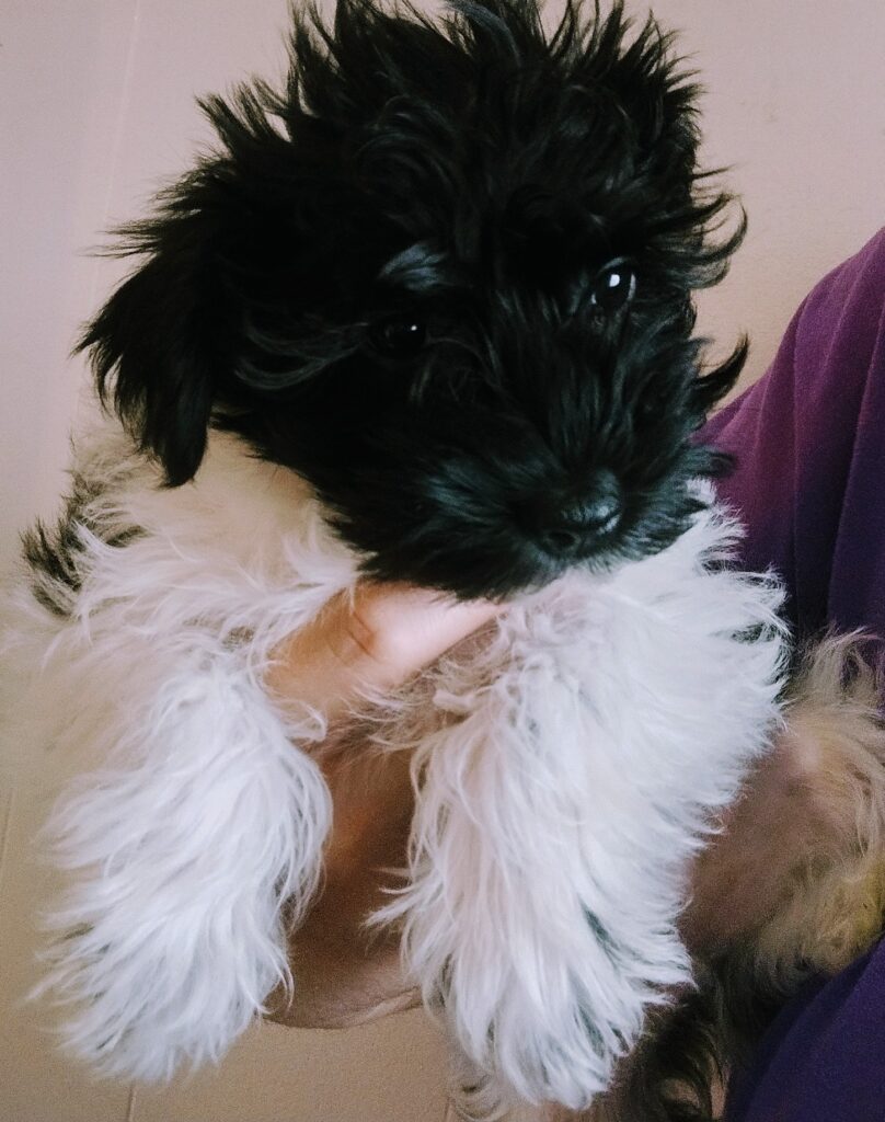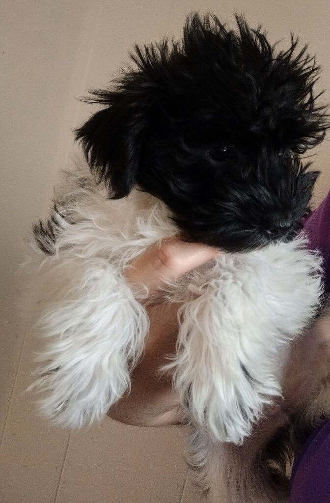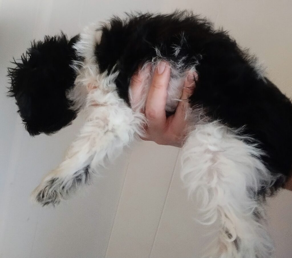 AKC Miniature Schnauzer. He was born 09/26/2025. He is a black and white parti color male. He has had his tail docked and dewclaws removed also he has had his shots and worming done. His mother is a AKC black Miniature Schnauzer and his father is a AKC black and white parti color Miniature Schnauzer. His mother weighs 14 pounds and his father weighs 10 pounds. He is a happy and healthy puppy that is ready for his new family and forever home.