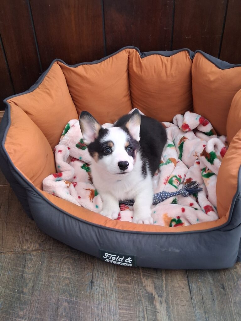 Male tri AKC pembroke welsh corgi. This little boy is perfect! From temper to looks. Working on potty training and ready for a life of adventure with his new family.