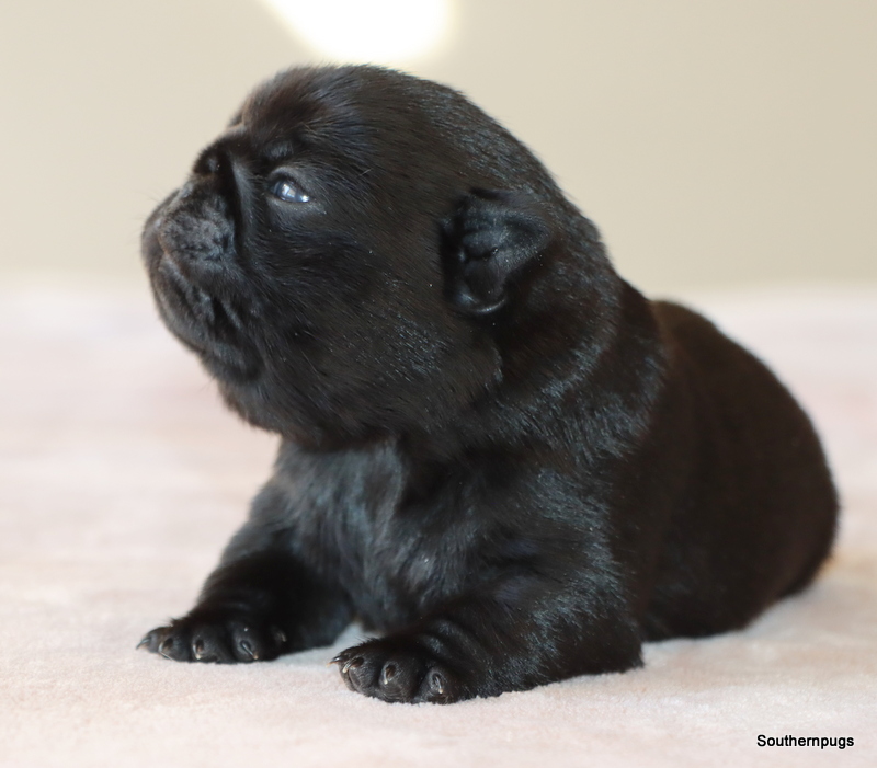 Jewels and Martin have an amazing litter in which one solid black Male is available for deposit until he is 8 weeks old. Born and raised inside our home with our children and other household pets, Jack will come home very socialized and definitely spoiled rotten. Jack is now 4 weeks old, he is building more confidence by the day. He is very curious about the world around him.