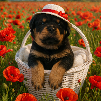 The dam and sire have good non-aggressive temperaments. The sire has a European pedigree and the shorter snout the Euros are known for. Our dogs are known for their exceptional shiny coats. The dam has the longer Rottie fur with waves along the back, which everyone finds striking.