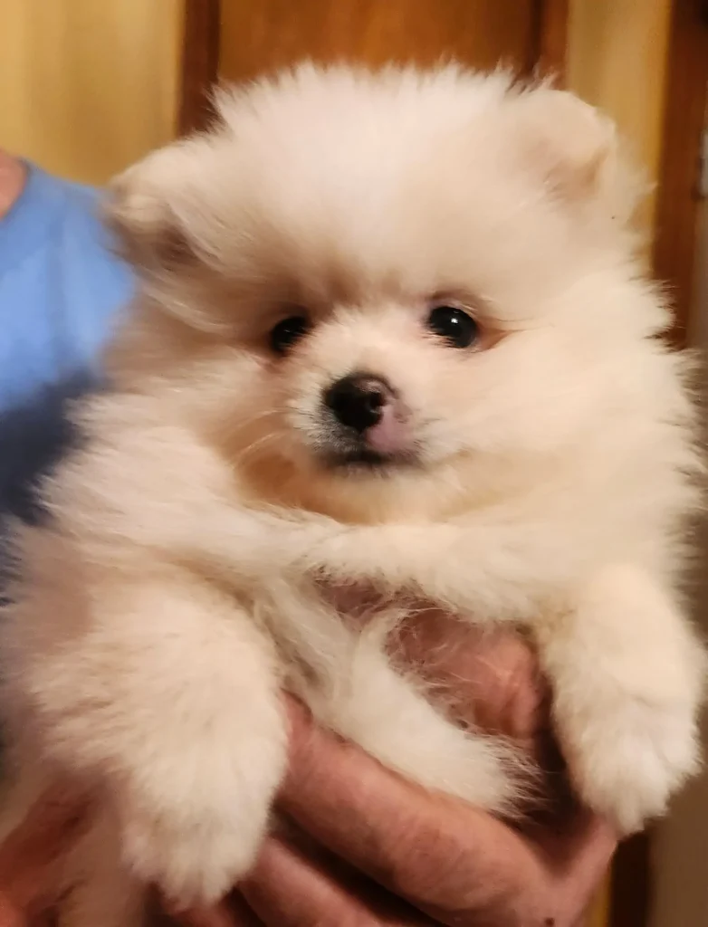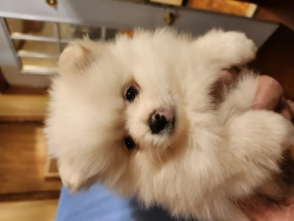 <li>10 week old AKC White Male Teacup Pomeranian weighs 2 lbs won’t get bigger than 7 lbs.”TINY” Is looking for a loving home</li>