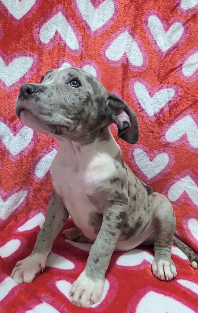 💚 Meet Vader, a handsome ABA-registered male American Bully with full pedigree. Stunning Blue Merle—strong, confident, sweet, and true to the breed.
