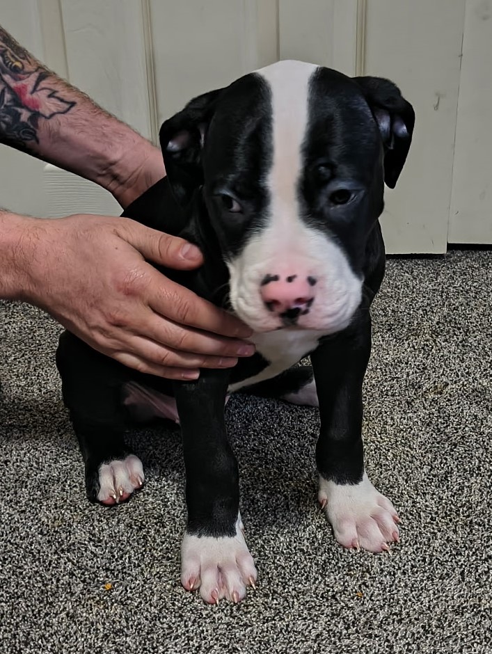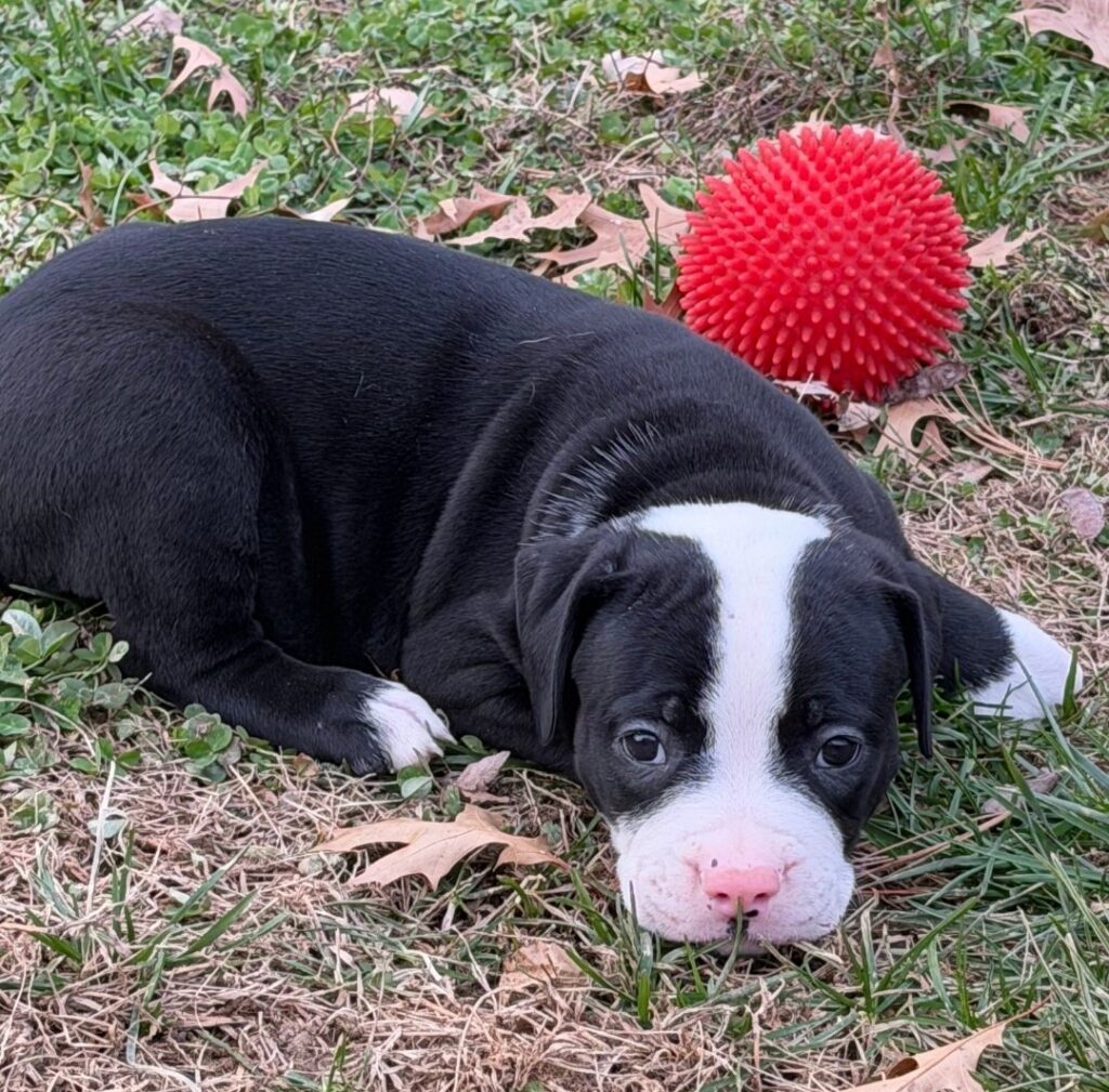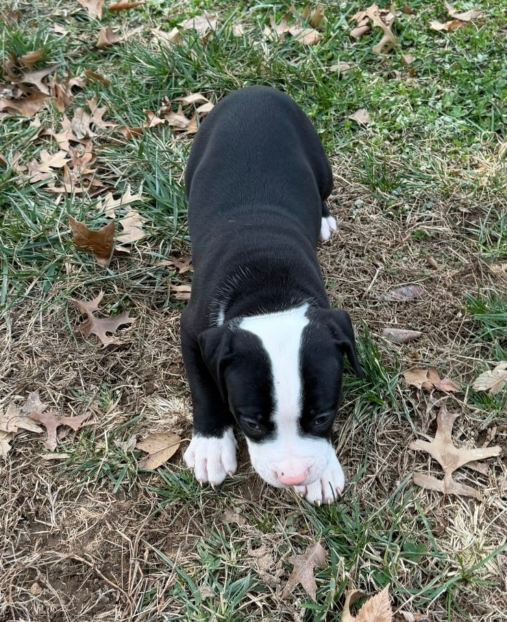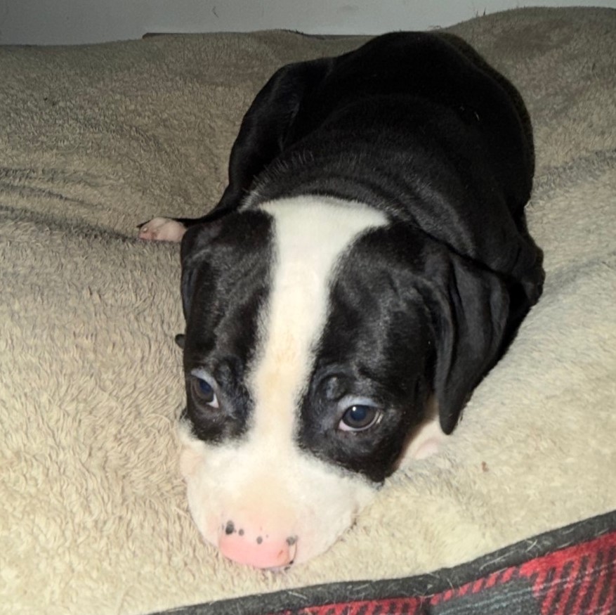 This puppy is so beautiful with its dominate black hair and white markings.  He is very attentive to his surroundings and loves to be around others.  Has been whined and is paper trained.  He really likes being cuddled.  He has an identical twin sister.  Even the vet couldn’t tell them apart.  Their features are so amazing.