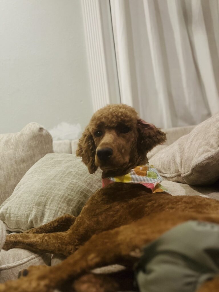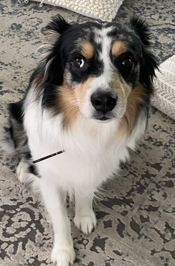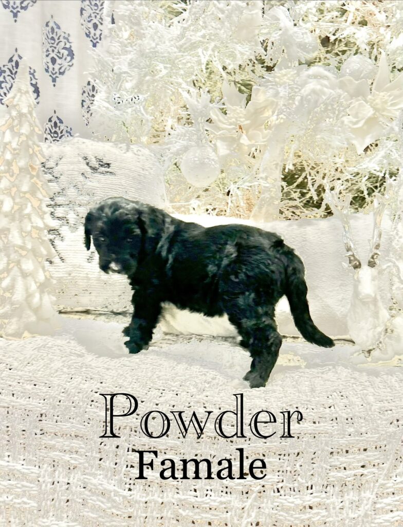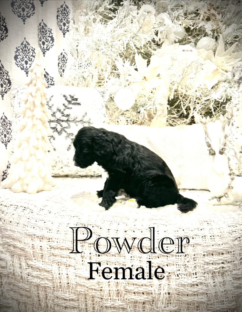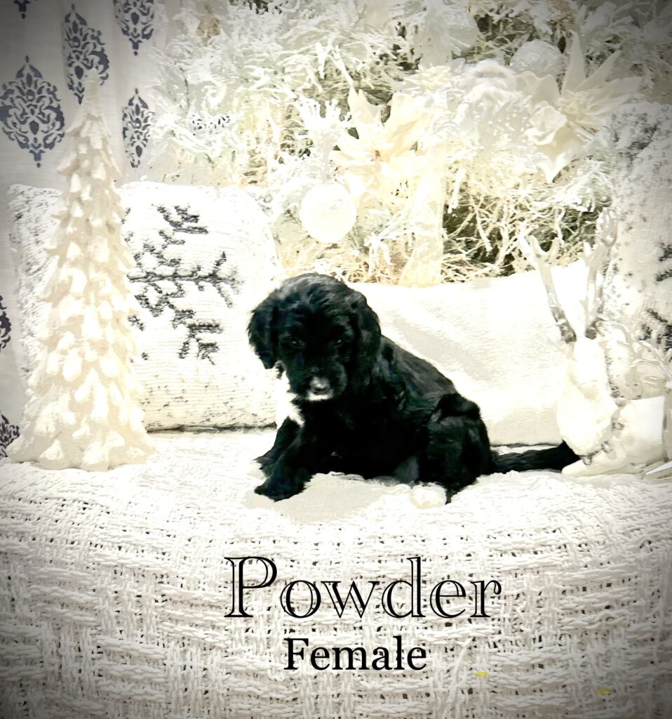 Sweet black and white girl Aussiedoodle. She has adorable markings on her nose and is playful and sweet. She will be ready for her forever home on 12/22/2025. Will hold for Christmas ever. Perfect present. Both parents are family pets and live inside the home. These babies are played with often and are very use to people so they love attention.