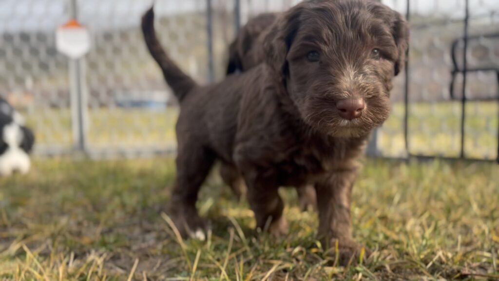 Australian Sheepadoodles make amazing family dogs-they’re gentle playful and incredibly loving. They’re great with kids eager to please and have a fun goofy personality that brings so much joy into a home!