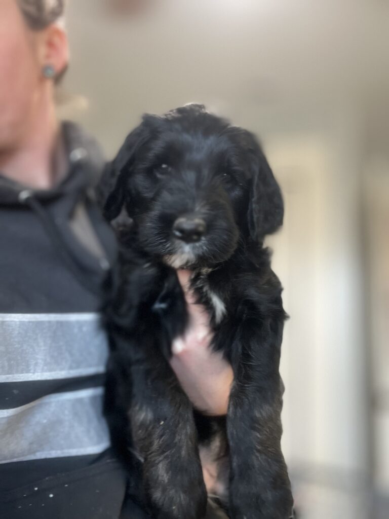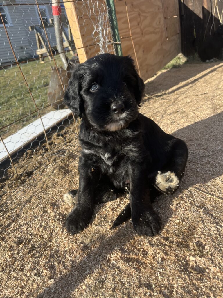 Australian Sheepadoodles make amazing family dogs-they’re gentle playful and incredibly loving. They’re great with kids eager to please and have a fun goofy personality that brings so much joy into a home!