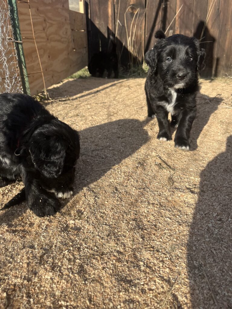 Australian Sheepadoodles make amazing family dogs-they’re gentle playful and incredibly loving. They’re great with kids eager to please and have a fun goofy personality that brings so much joy into a home!