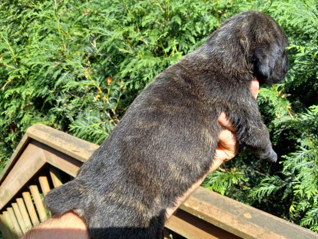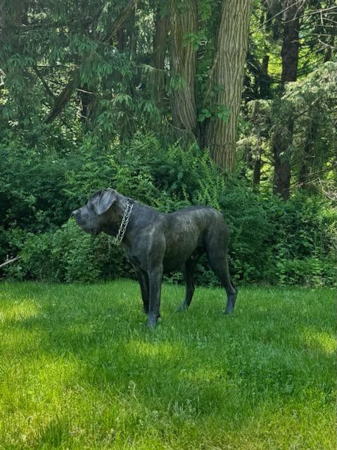 This is Rita, a precious pure bred Cane Corso with a stunning black brindle coat. She has already had her tail docked, dew claws removed, vet checked and fully dewormed. A very well-bred dog at a very fair adoption fee. Super healthy and energetic and always greets me with kisses. I expect her to look a lot like her daddy in the pics. I’m sure she will be the perfect dog to protect your home and family. I will continue to add pics since she is growing like a weed! 814 701-1089