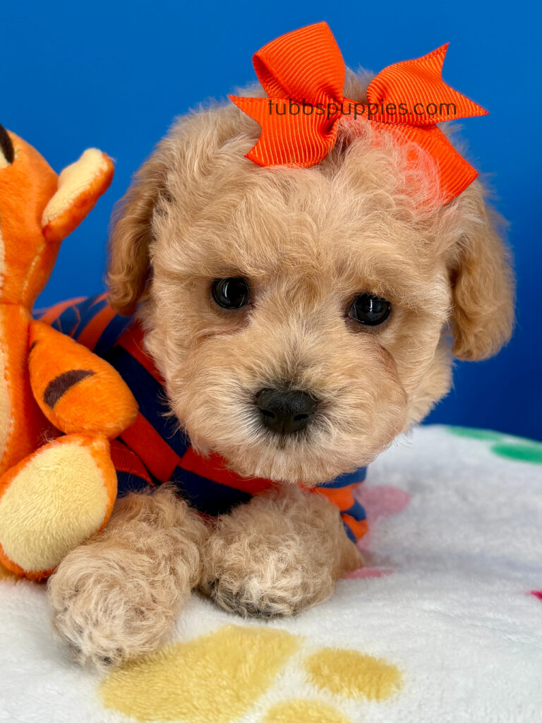 All of our puppies come with a 1 year health guarantee. They are up to date on shots and deworming and go home with a new puppy kit and new puppy care instructions. We start them on potty pads and many go home with the basics in potty training. We are always available to answer any questions and help you with your baby once you have them home. If you are interested in this sweet boy, please visit our website to fill out a questionnaire: https://tubbspuppies.com/puppies-for-sale/