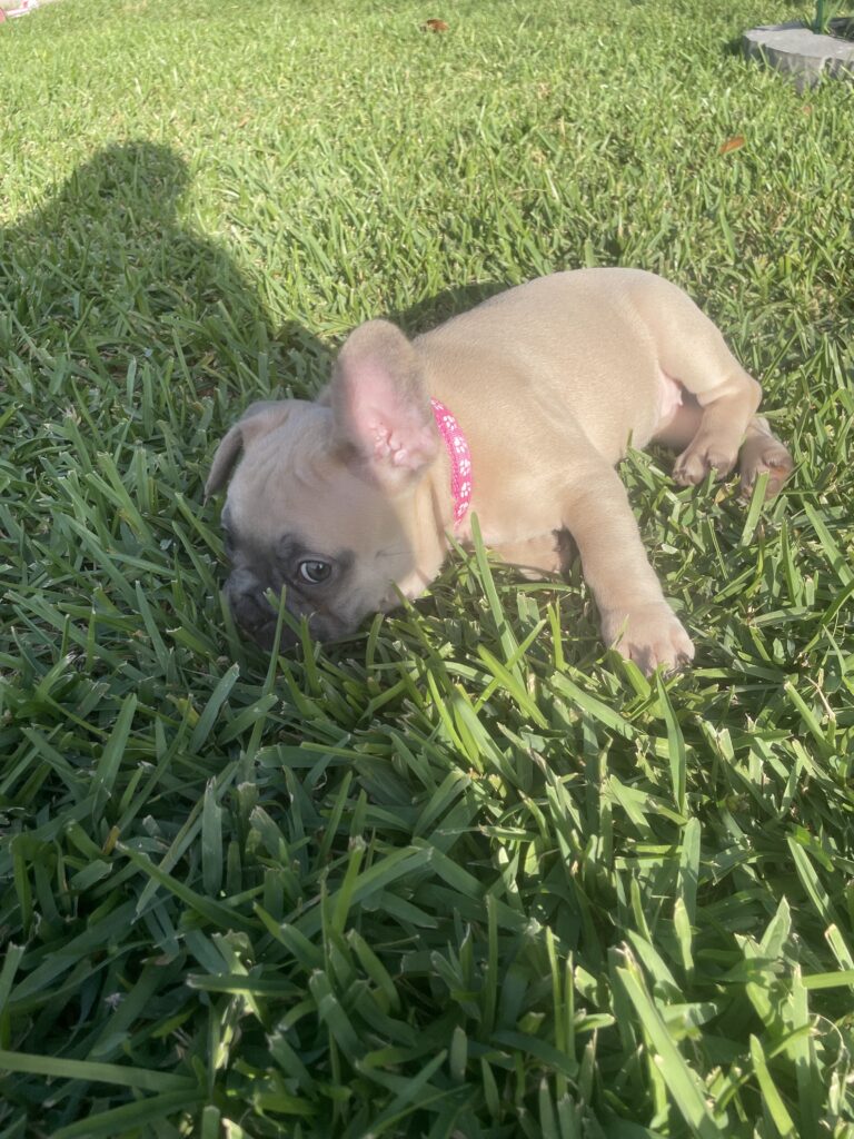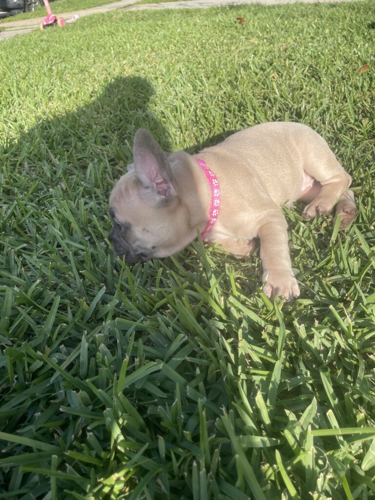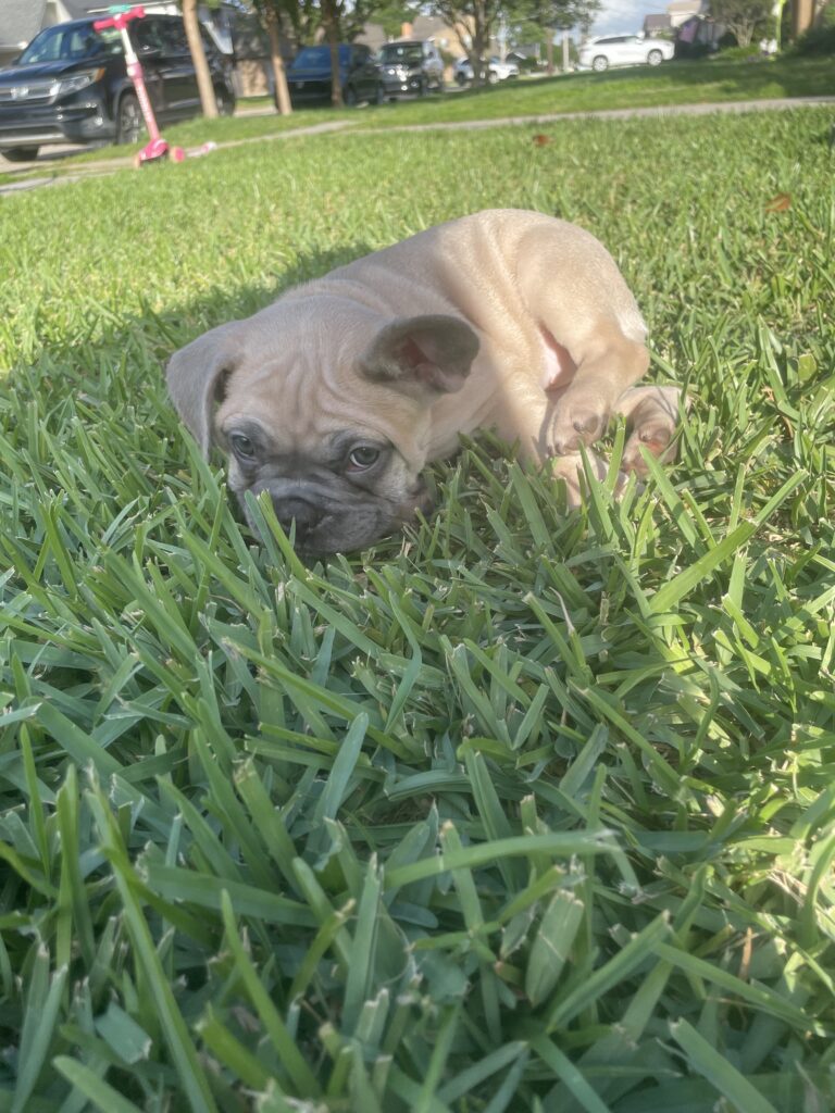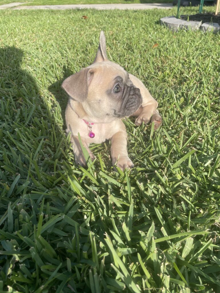 Cleo is our beautiful black fawn girl.  She is so playful and loves everyone she encounters.  She loves to cuddle and go anywhere you take her.  She loves kids and other dogs.  She is perfect and the favorite.