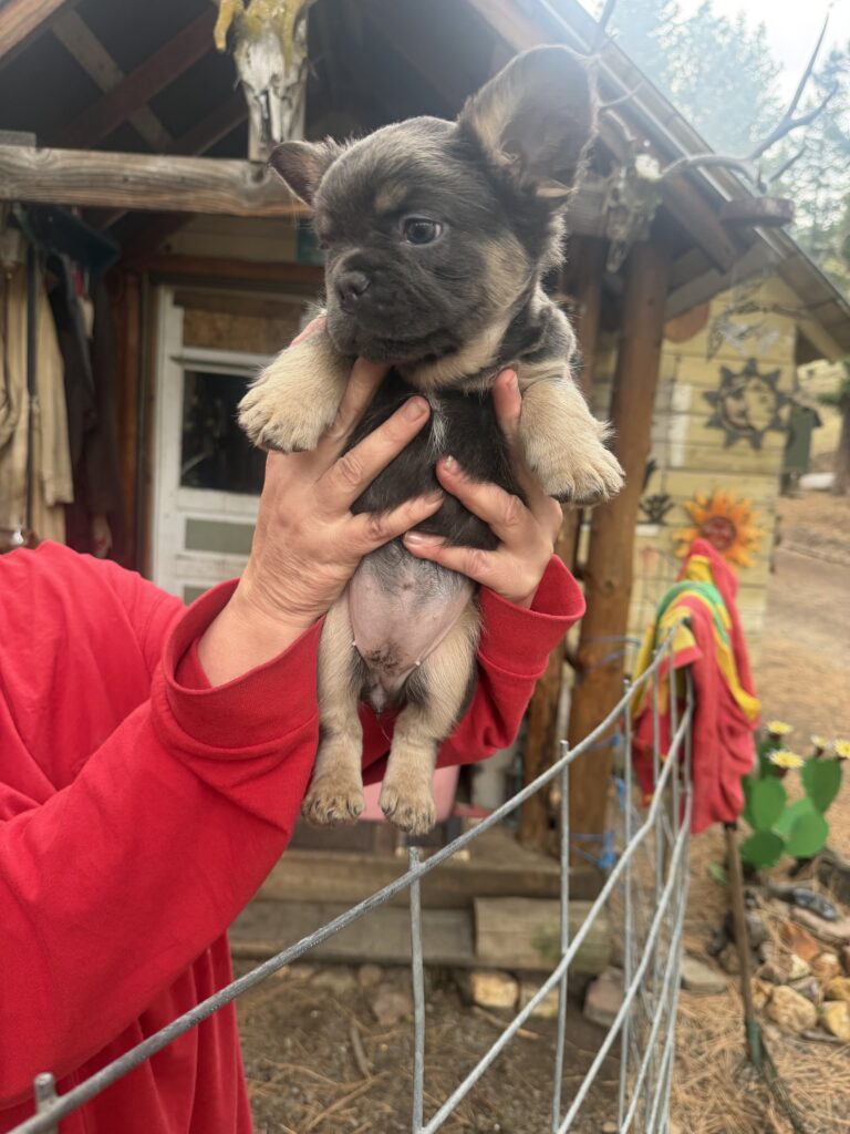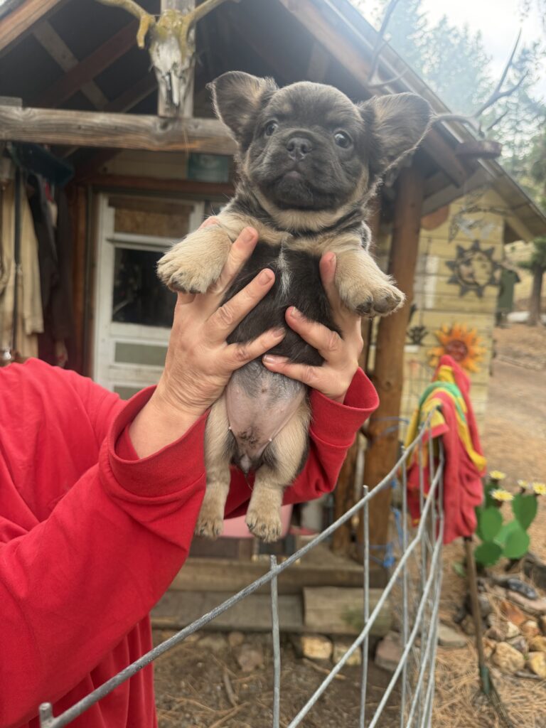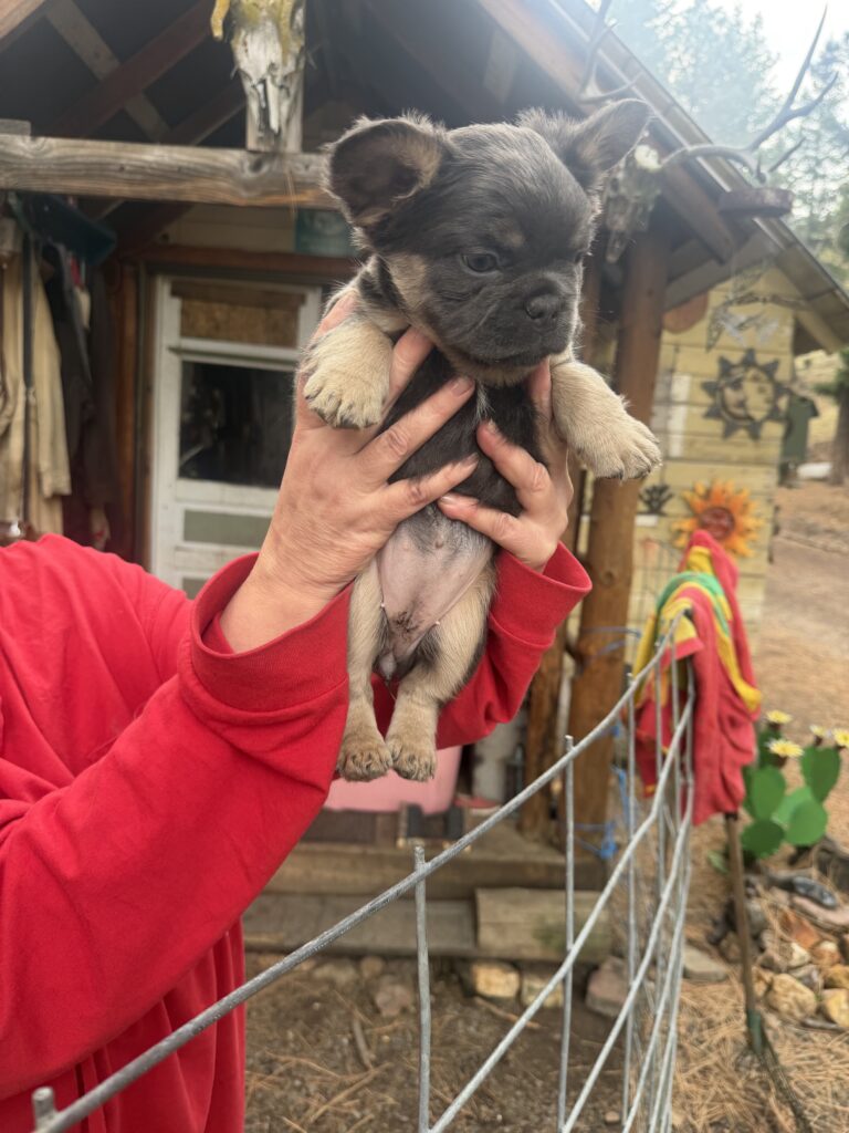 ALC French bulldog puppy’s in Prineville Oregon will be ready around November 22 will have vet checks, shots, dewormed and chips full papers text or call more info 54 one – 40 five- 089seven this female is a dark blue tan point fluffy female, dam and sire are 6 panel cleared and their Sire has been OFA tested and has a CHIC certificate