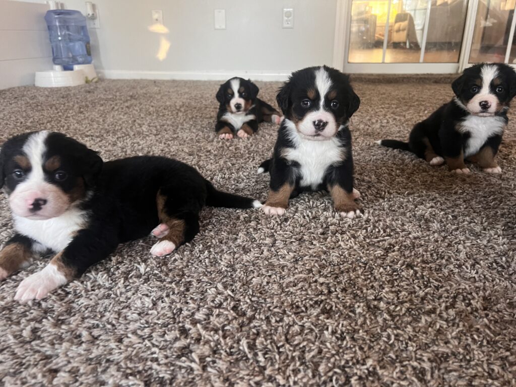 This is Bolt. Bolt is always watching and studying his brothers and sisters. He is incredibly sweet and full of personality. Raised in a loving household with his parents, little kids, and cats. Parents are registered and parents will be provided with papers for registration. We will also be taking care of their health and wellness shots before going home!