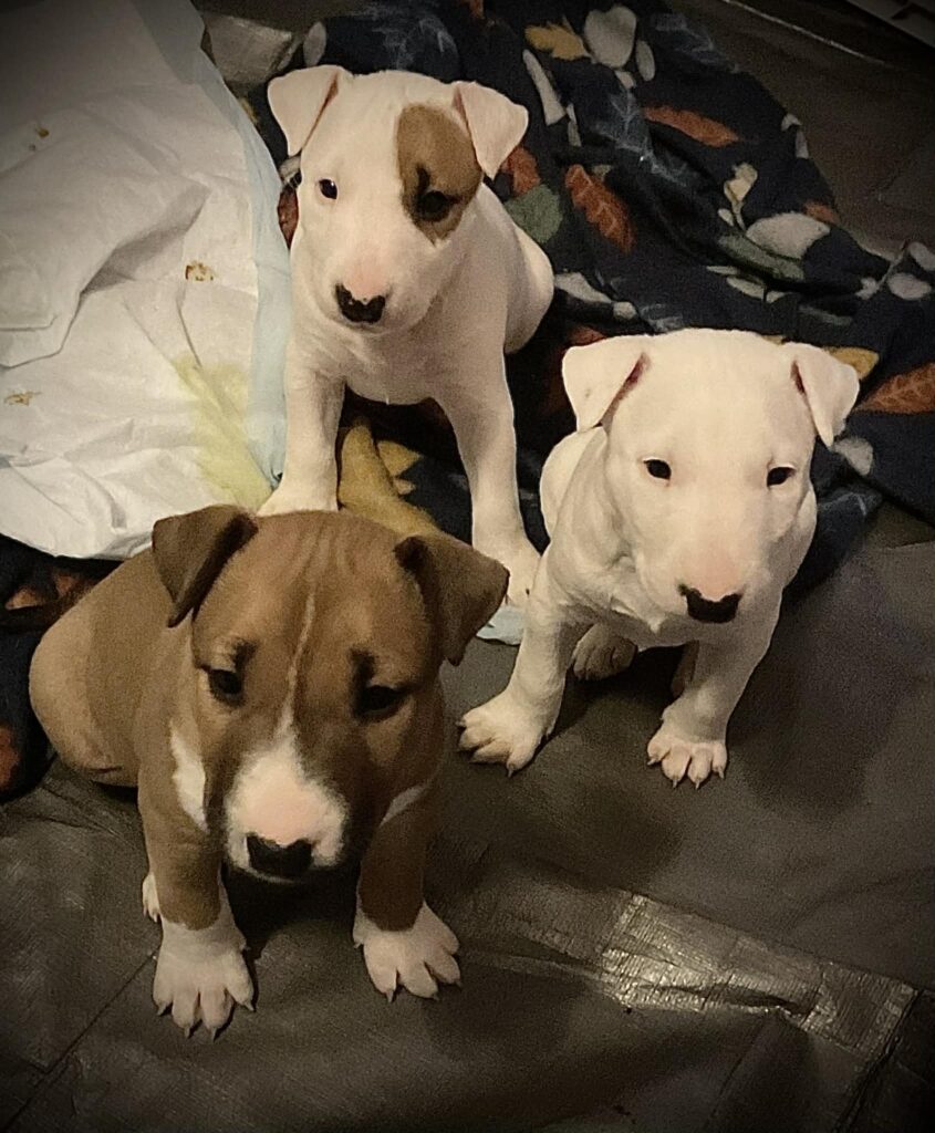 I have 3 English Bull Terrier puppies for sale. 2k each, vet check, 1st shots, dewormed. Mom and dad on site.