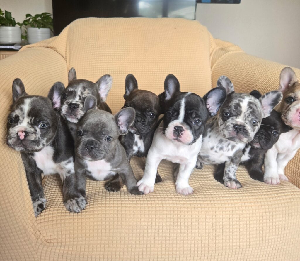 Zeppelin and Frank Sinatra are proud to present the Sound of Music litter! This litter of 8 was born on August 18 and will be ready to go to their new homes on November 1. This match produced a beautiful combination of merle, pied, and brindle puppies. All puppies come with AKC Papers, Health Certificate, and 1 year health guarantee. Breeding rights are available for a fee. Delivery is available anywhere in the United States.