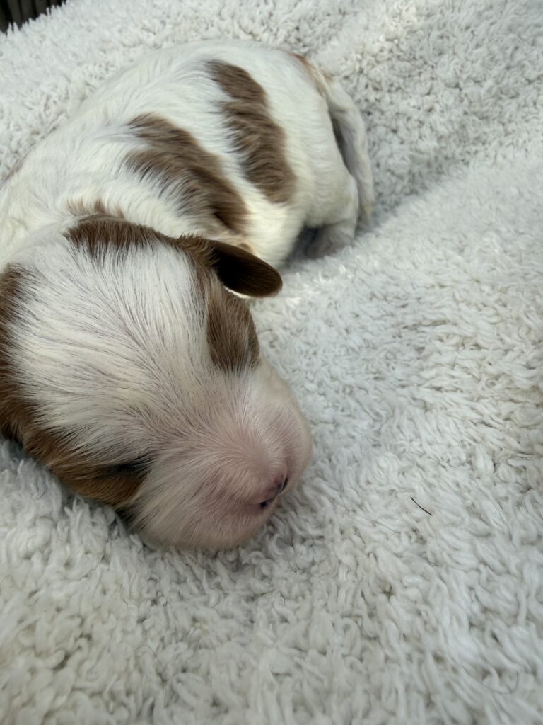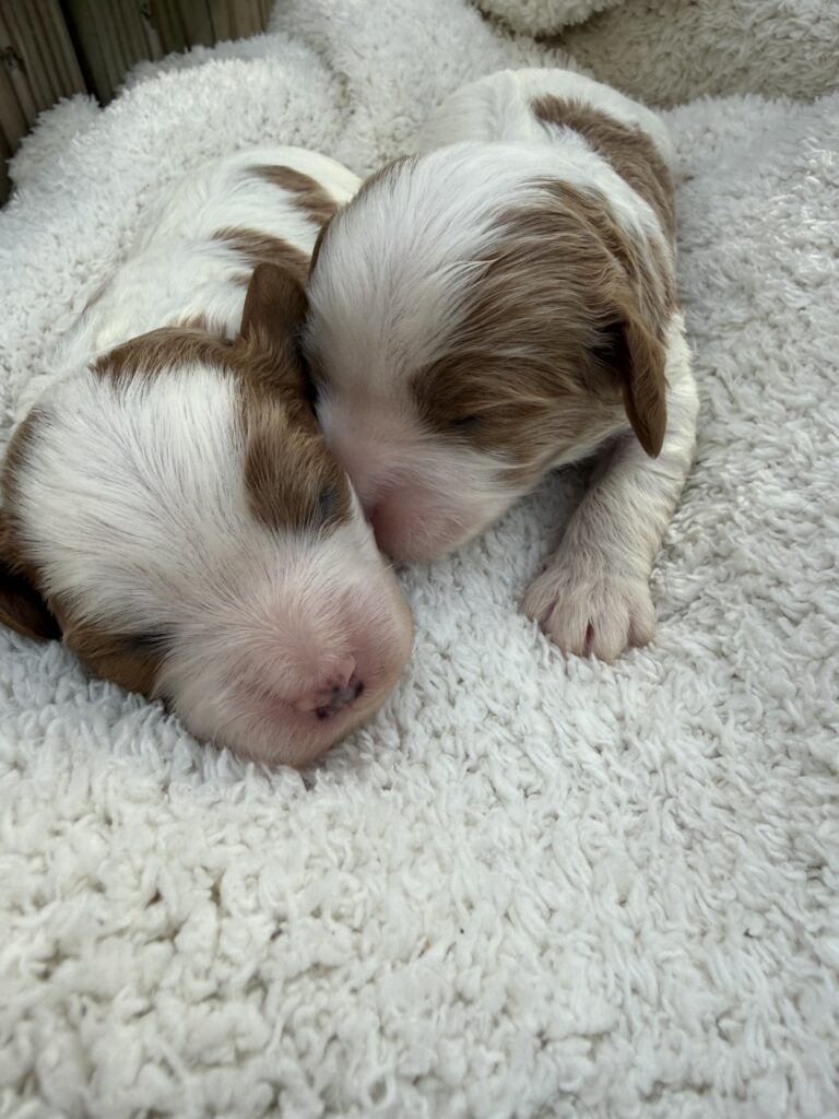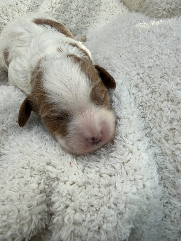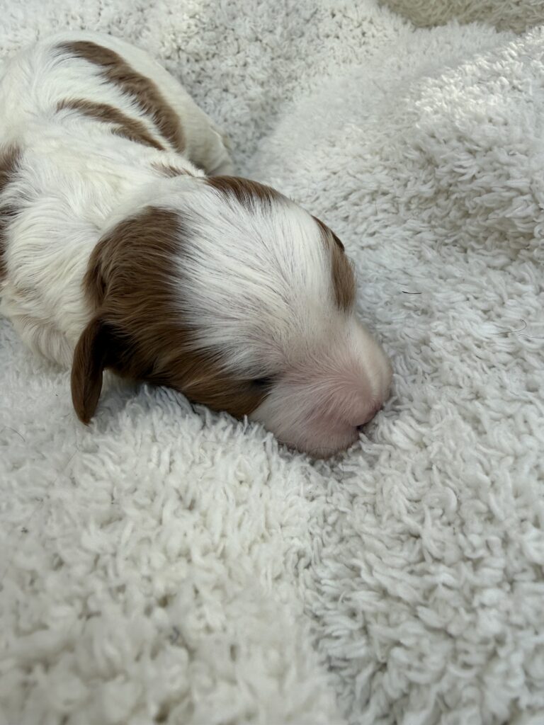 A new addition to our Pet Family, Hazel(Mom) and Benji(Dad) welcomed their litter of F1 Cavapoo puppies on 03/16/2026. Hazel is registered with AKC and CKC. Benji is AKC and CKC registered. Hazel(Mom) is a miniature poodle(13lb) with the Golden Brown and white color, Benji (Dad) is a Cavalier King Charles Spaniel, (30lb) with a white and Gold color coat.   Both parents are DNA and Health cleared. The puppies will have their current vaccinations and deworming, theywill be given a clean bill of health by their vet. Let me know if youre interested in pictures or Video/ Live Chat.