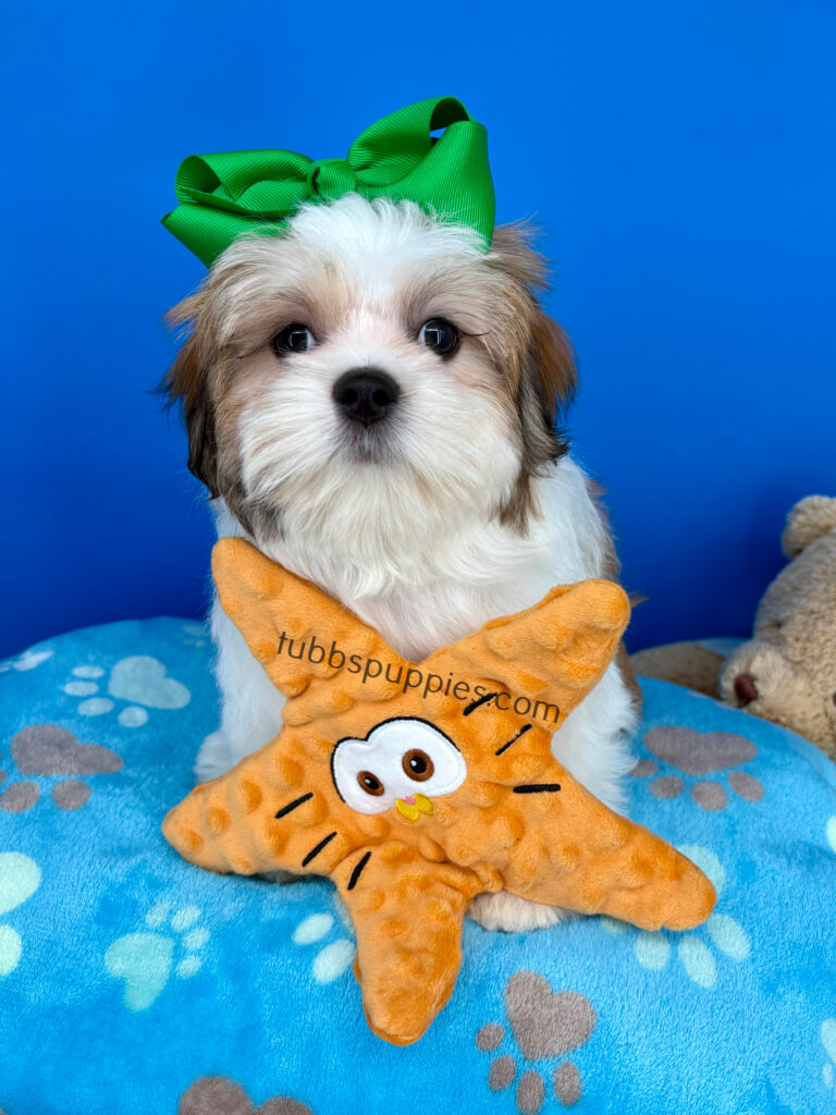 All of our puppies come with a 1 year health guarantee. They are up to date on shots and deworming and go home with a new puppy kit and new puppy care instructions. We start them on potty pads and many go home with the basics in potty training. We are always available to answer any questions and help you with your baby once you have them home. If you are interested in this sweet boy, please visit our website to fill out a questionnaire: https://tubbspuppies.com/puppies-for-sale/