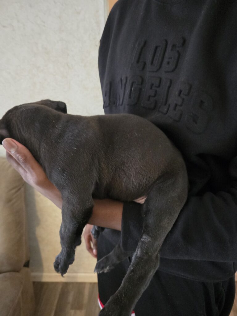 Born Jan 24. We have a Chocolate/ White bully. She is vaccinated. Please message if interested or for more info.