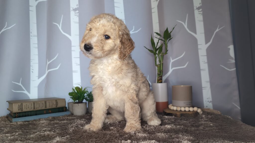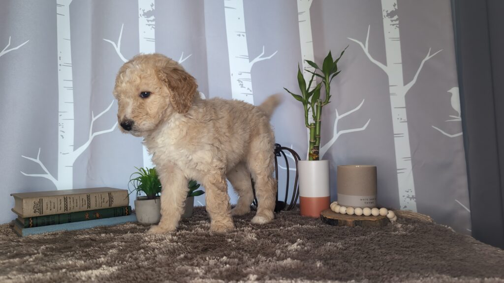 Mom is a first generation tricolor Bernedoodle (60lbs) and dad is a blue merle Standard Poodle (50lbs). Puppies are guaranteed not to shed. They are raised around children and other dogs. All puppies go home at 8 weeks with all current vaccinations, deworming, and dew claws removed. Ready to go home November 18, 2025.