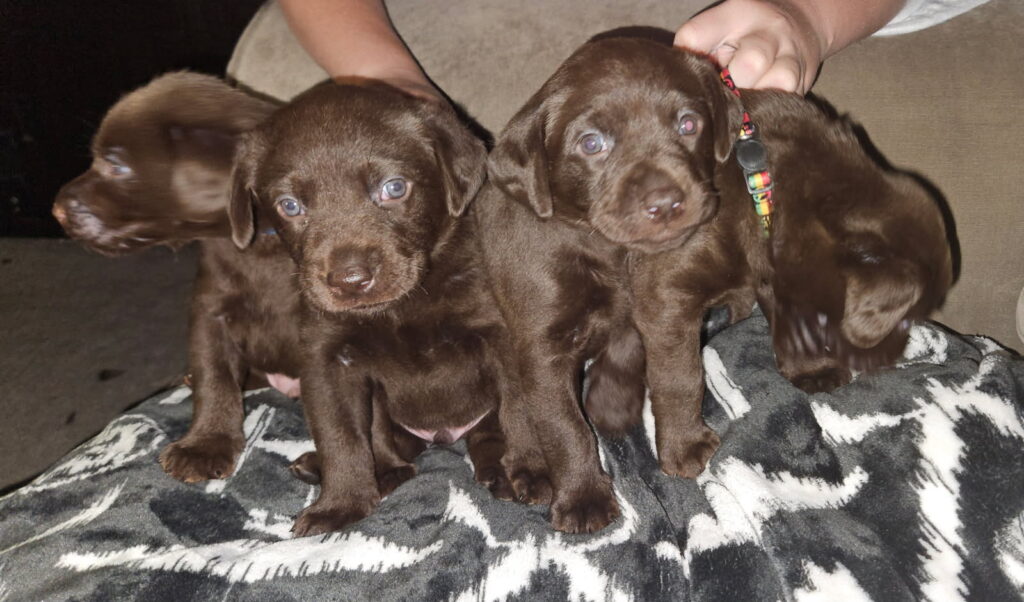 Are purebred Chocolate Sire and Silver Dam had puppies unexpectedly but man are they CUTE, fun, cuddly and going to great companions and family dogs!