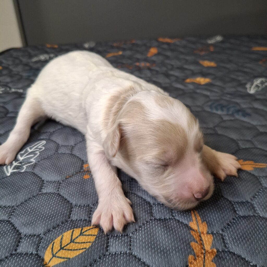 Meet Cupid she is Izzy’s doodles signature puppy of our program  a truly special puppy with a gorgeous cream-colored coat and a serene, gentle demeanor. She is the ideal choice for families prioritizing an exceptionally low-shedding dog.
