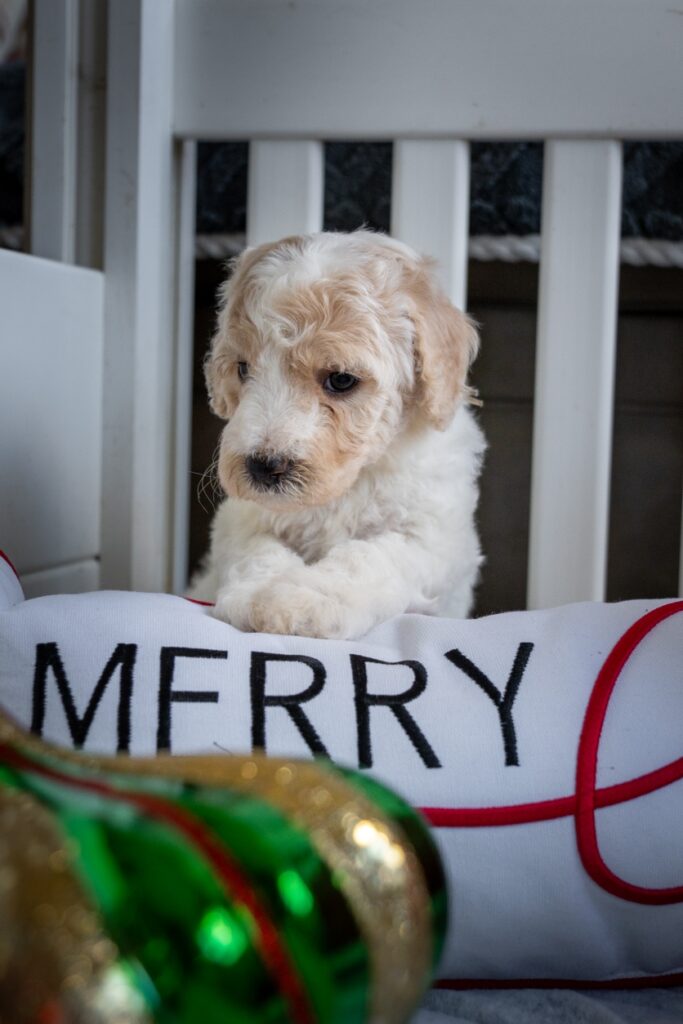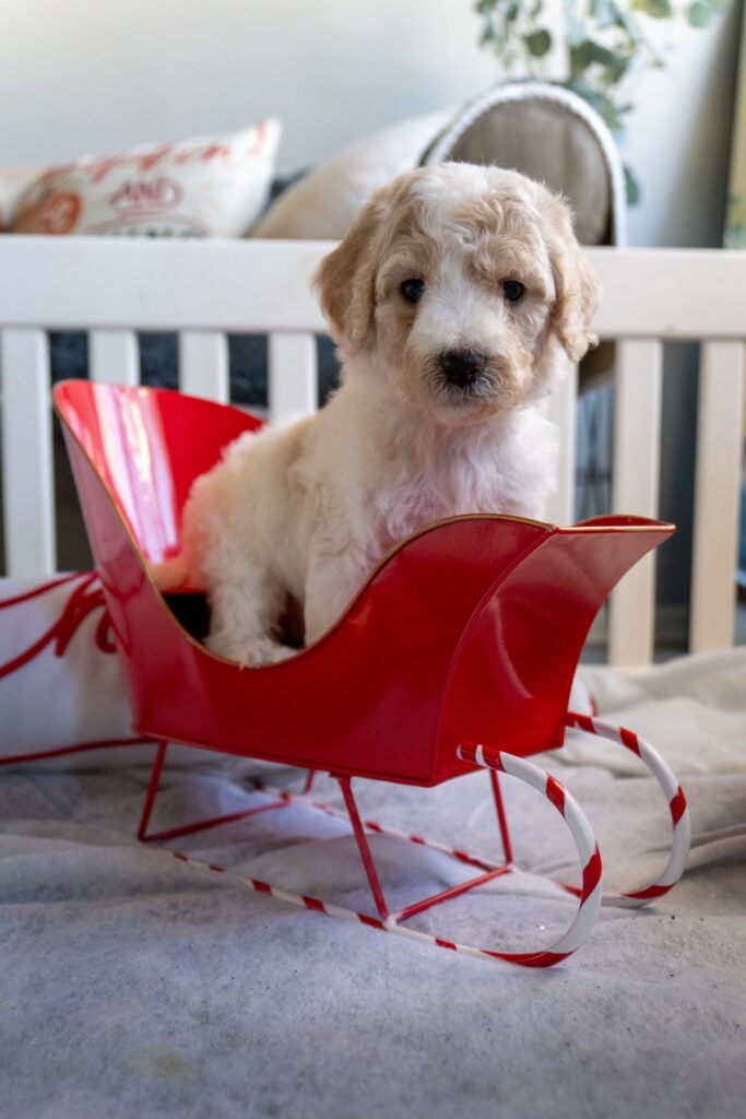 Meet Cupid she is Izzy’s doodles signature puppy of our program a truly special puppy with a gorgeous cream-colored coat and a serene, gentle demeanor. She is the ideal choice for families prioritizing an exceptionally low-shedding dog.