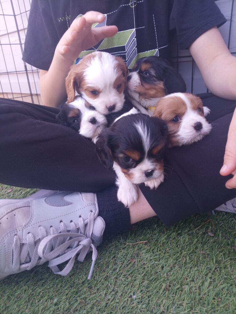 This is Momma’s first litter. Green collar is probably the calmest of the litter. Very sweet, and loves to play. We are working on potty training and transitioning to kibble. Will be ready to go home March 20th. Willing to meet within reason.