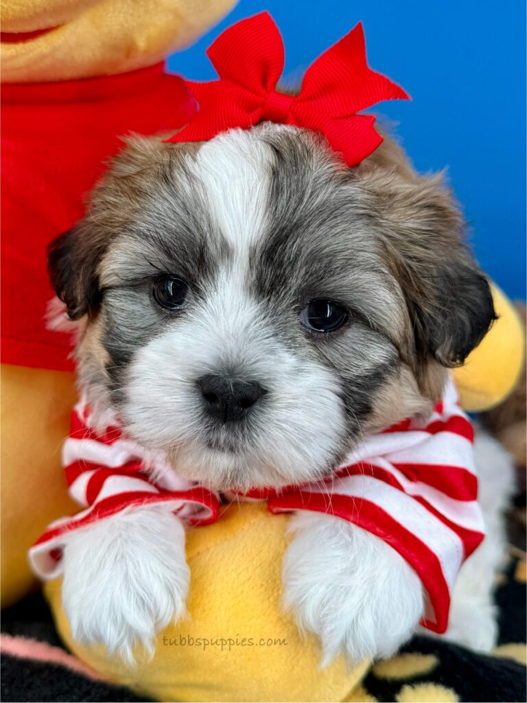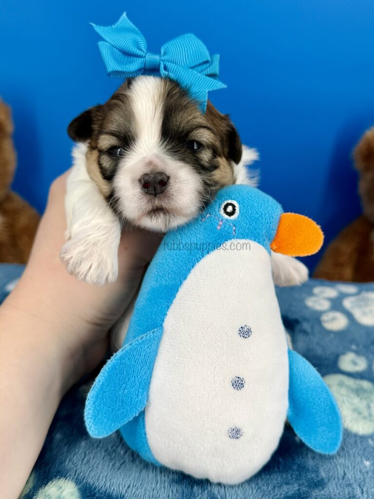 All of our puppies come with a 1 year health guarantee. They are up to date on shots and deworming and go home with a new puppy kit and new puppy care instructions. We start them on potty pads and many go home with the basics in potty training. We are always available to answer any questions and help you with your baby once you have them home. If you are interested in adopting this sweet boy, please visit our website to fill out an adoption questionnaire: https://tubbspuppies.com/puppies-for-sale/