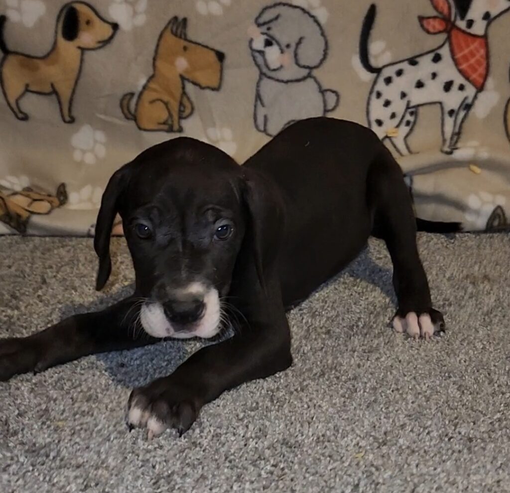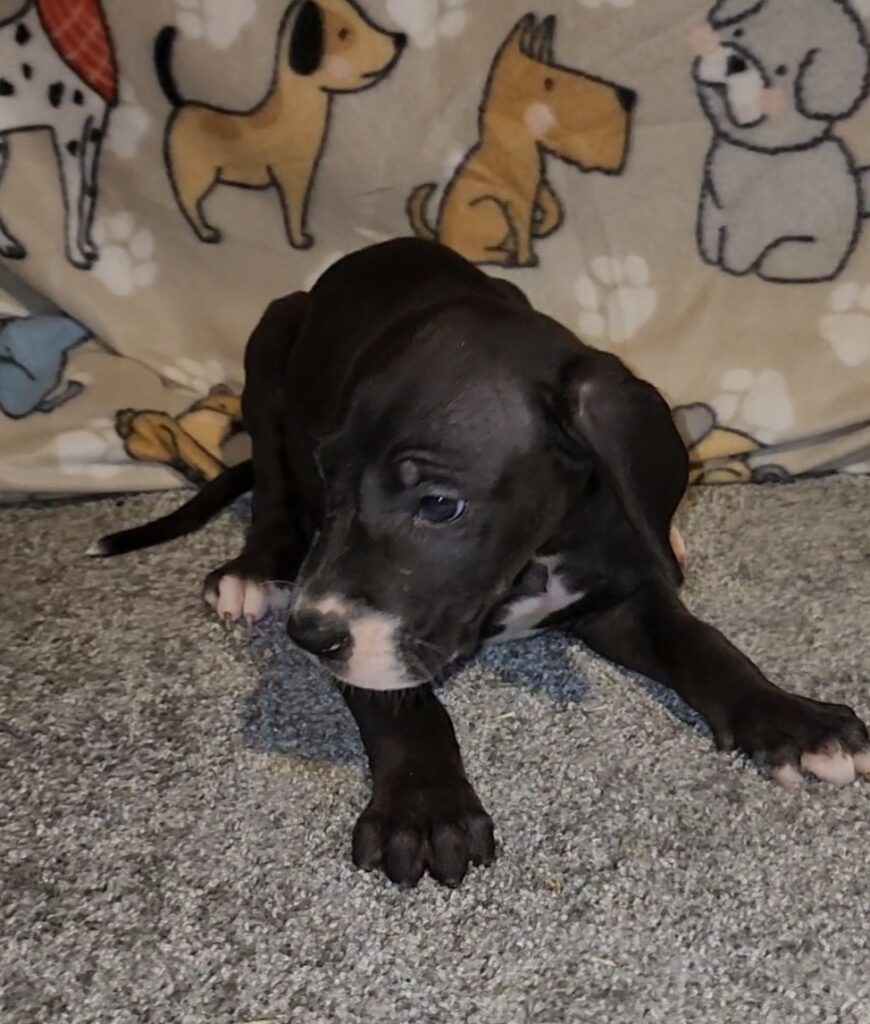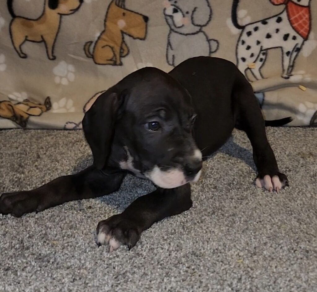 Eileen is our black mis marked mantle. She will be vet checked at 8 wks before going home. She comes with CKC registration, microchipped, puppy pack (leash, collar, toys, food) 2 year health guarantee, lifetime breeder support. Ground transport or flight nanny are available at buyers expense. Facetime is available via facebook. Digital payment only. No cashier check via US mail.