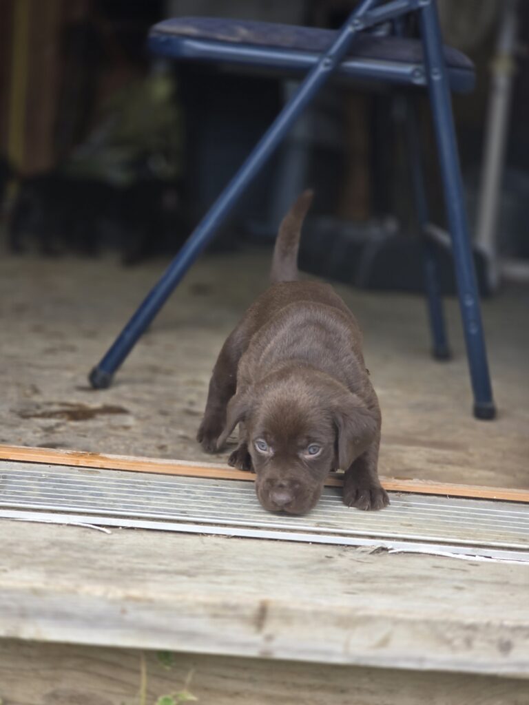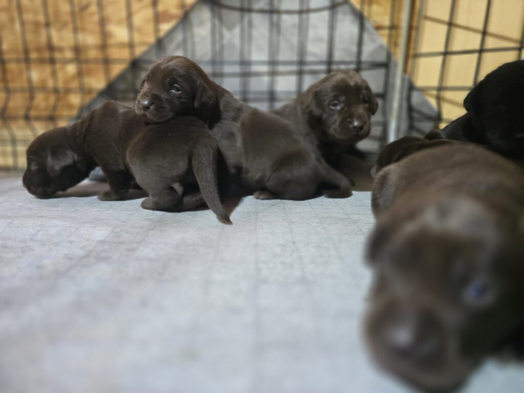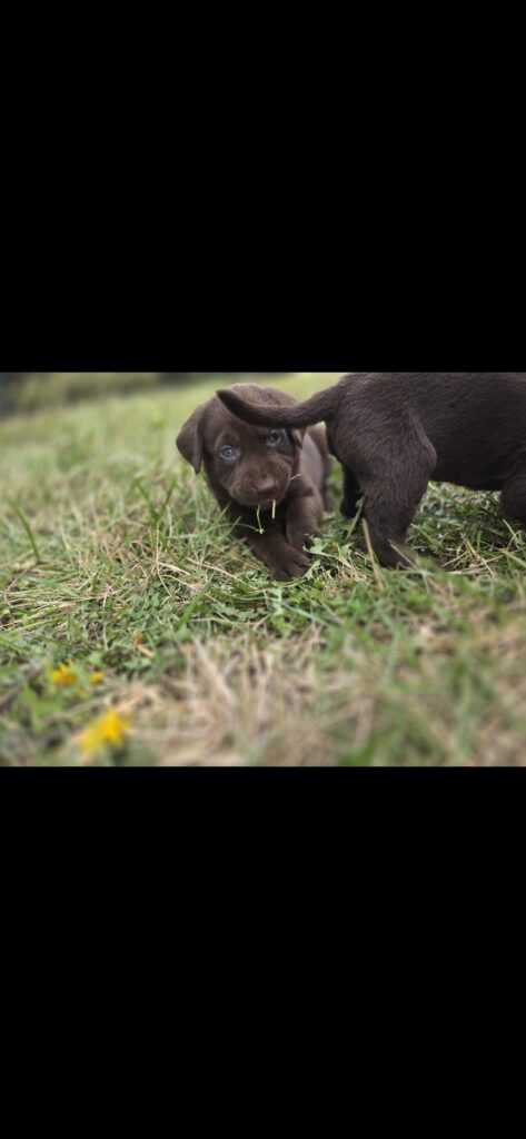 We have a beautiful female chocolate Labrador Retriever looking for her forever home! She comes from titled parents with a strong pedigree, combining excellent hunting ability, intelligence, and a calm, family-friendly temperament.