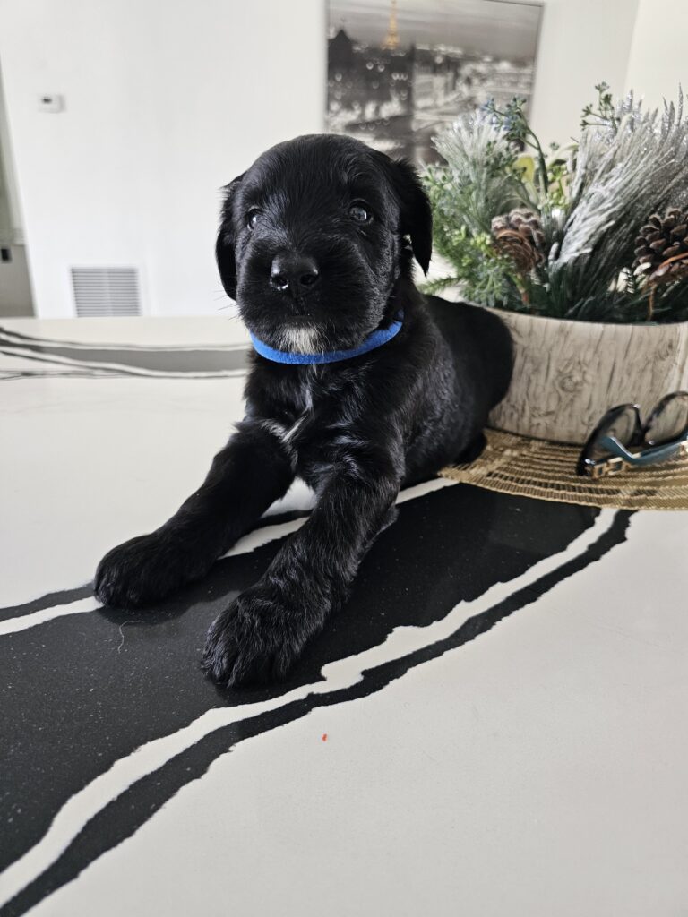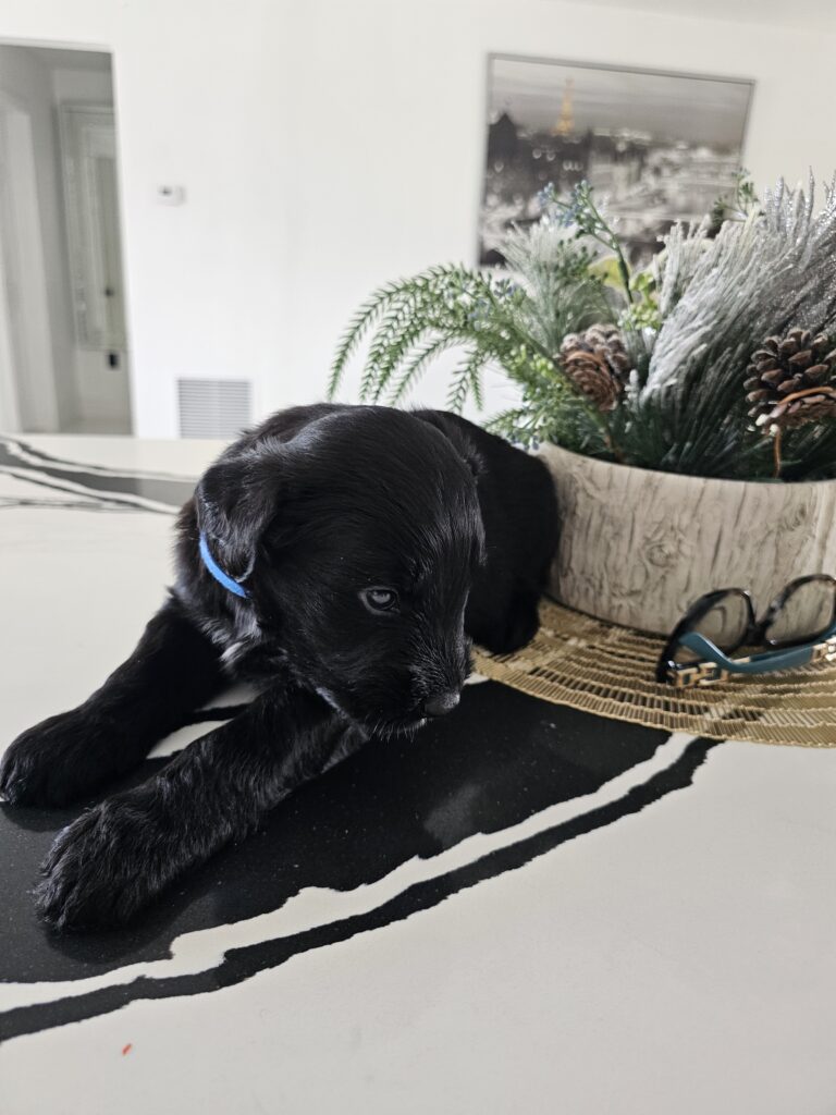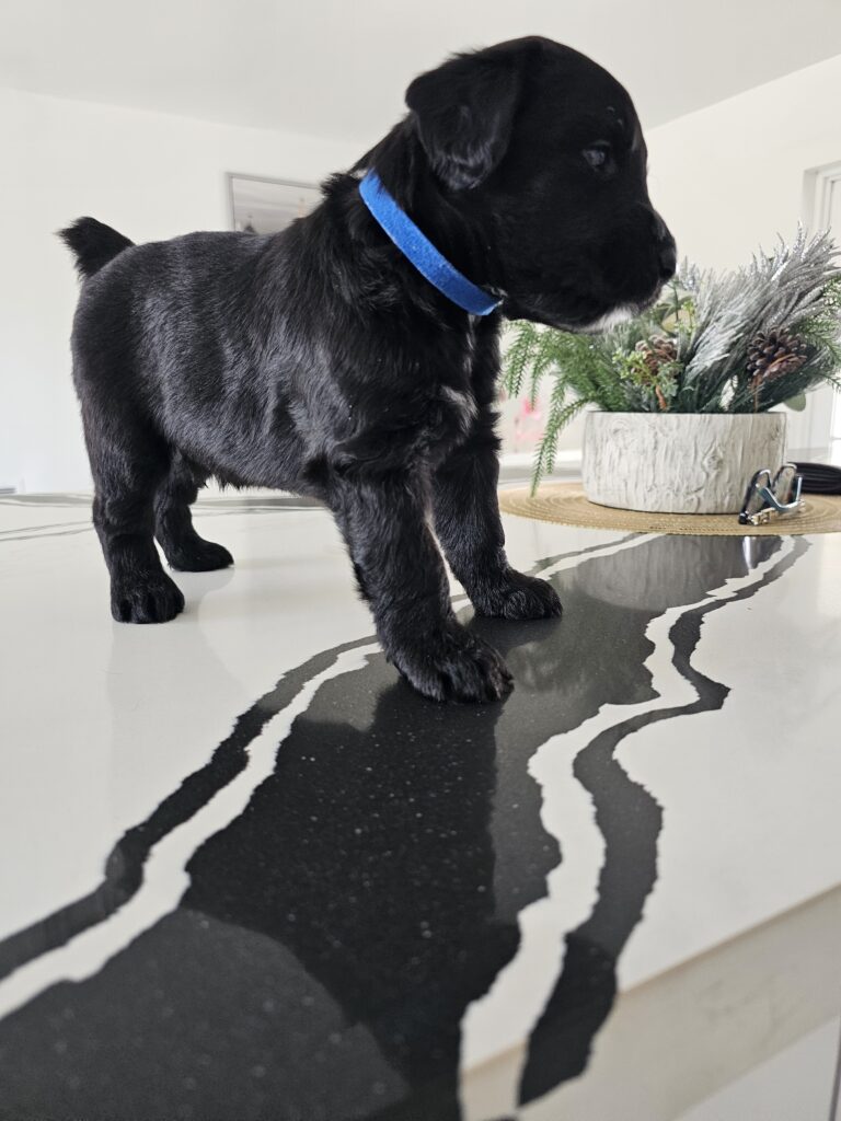 This beautiful boy was the 4th to born. All shine black with white spot under the shin. Very active and healthy. Price negotiable. Almost 5 weeks and almost ready to find a loving home. Pure breed, no mix. I have 5 more boys and 2 girls