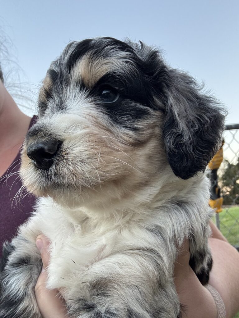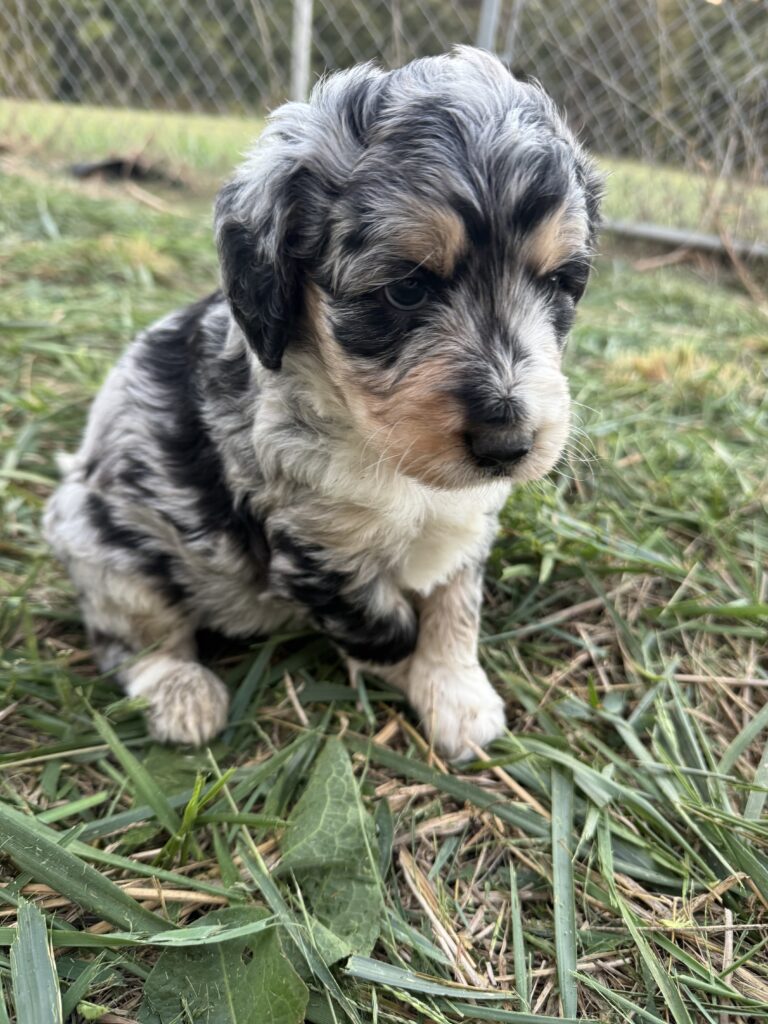 Meet our beautiful female Golden Aussiedoodle — the perfect mix of intelligence, loyalty, and love! This sweet girl is not just adorable, she’s incredibly smart, loyal, and eager to please. With her soft golden curls and gentle eyes, she’s guaranteed to melt your heart.