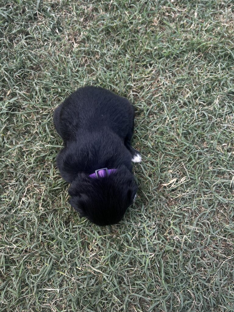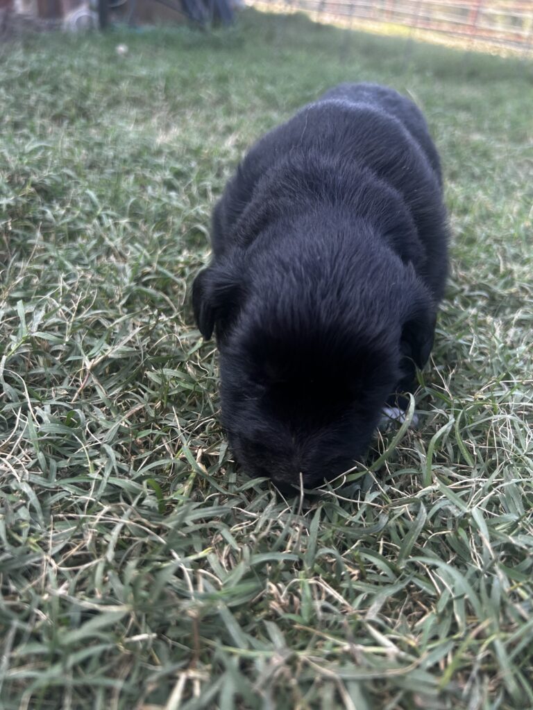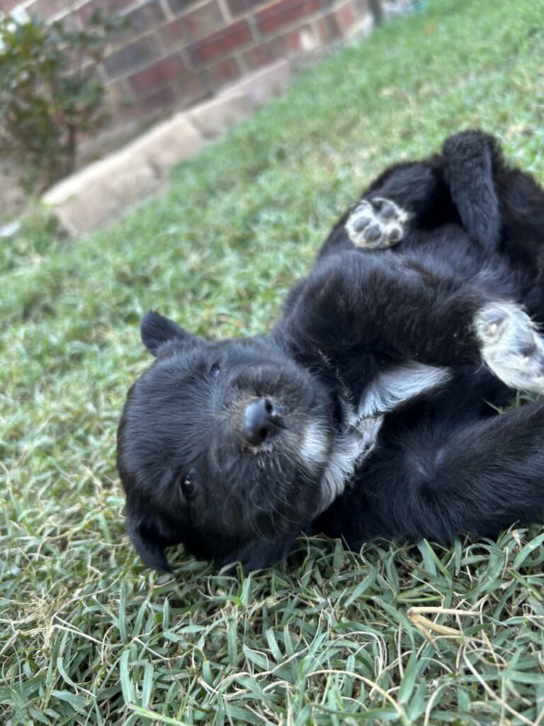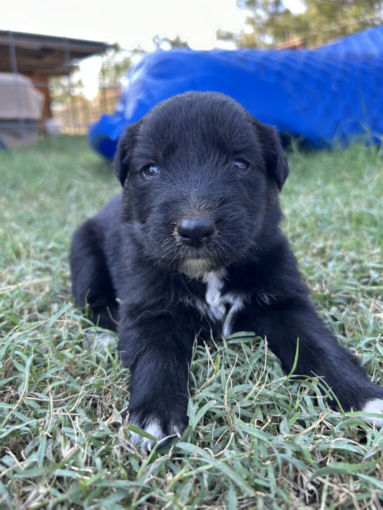 Daisy is a beautiful Golden Aussie girl with a sleek black coat, a white blaze on her face, and a charming patch on her chest that makes her stand out. Her bright eyes and curious personality are already showing, and she loves to be close by and take in the world around her. Daisy comes from our sweet Golden Retriever, Sadie, and our loyal blue merle Australian Shepherd, both loving, intelligent, and family-oriented. With this wonderful blend, Daisy is sure to grow into an affectionate, playful, and loyal companion.