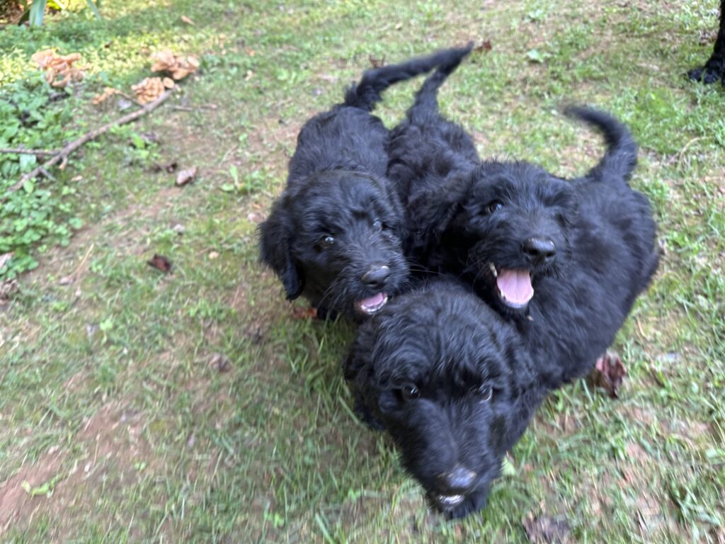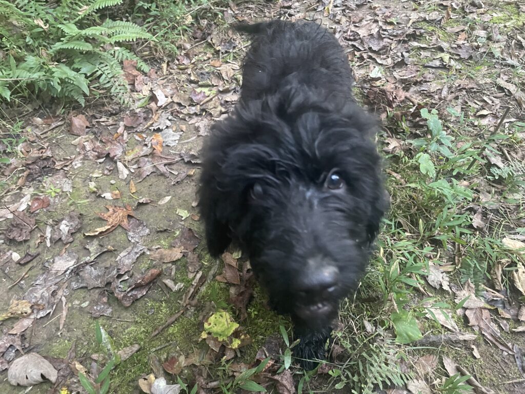 Hi! My name is Alvin. You could call me a black labra-goldendoodle. I am a mixed breed including golden retriever, labrador retriever, and poodle. I’m charming, and I love playtime and affection with humans!