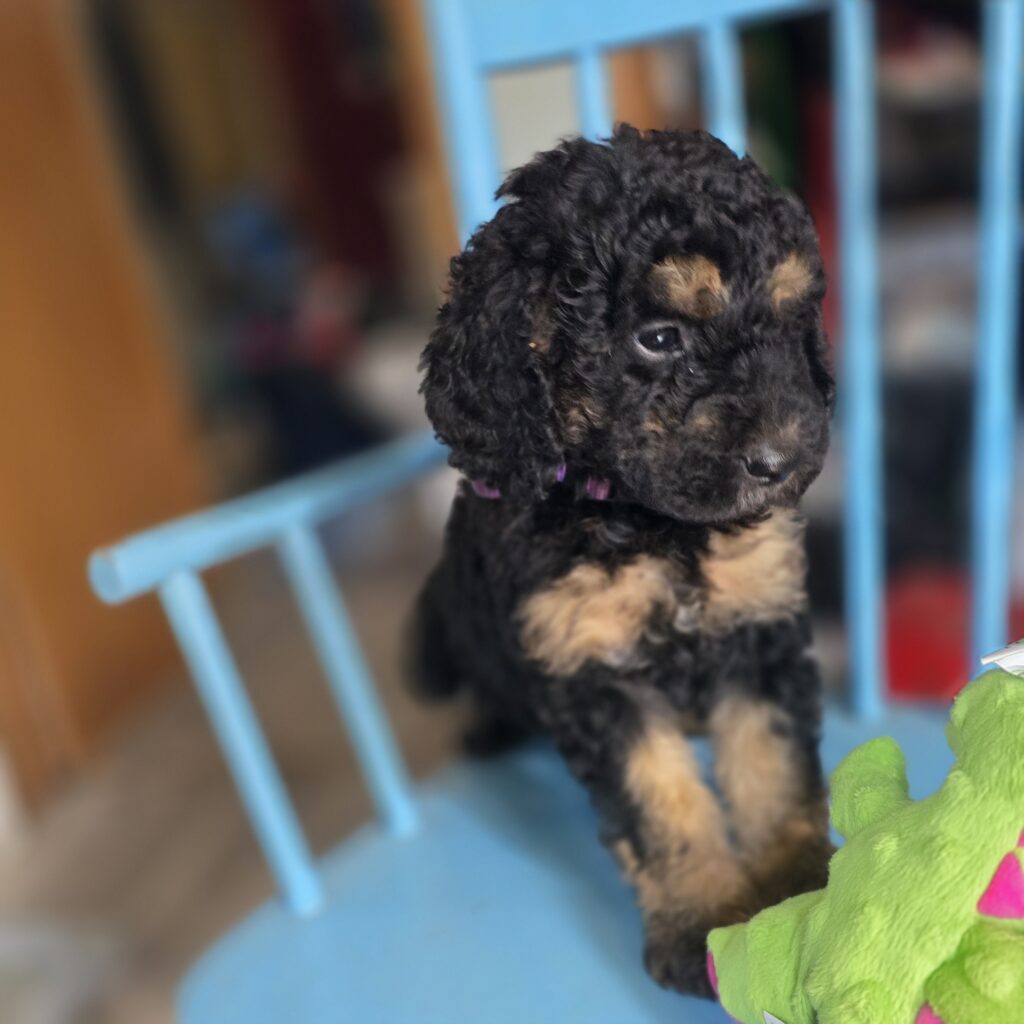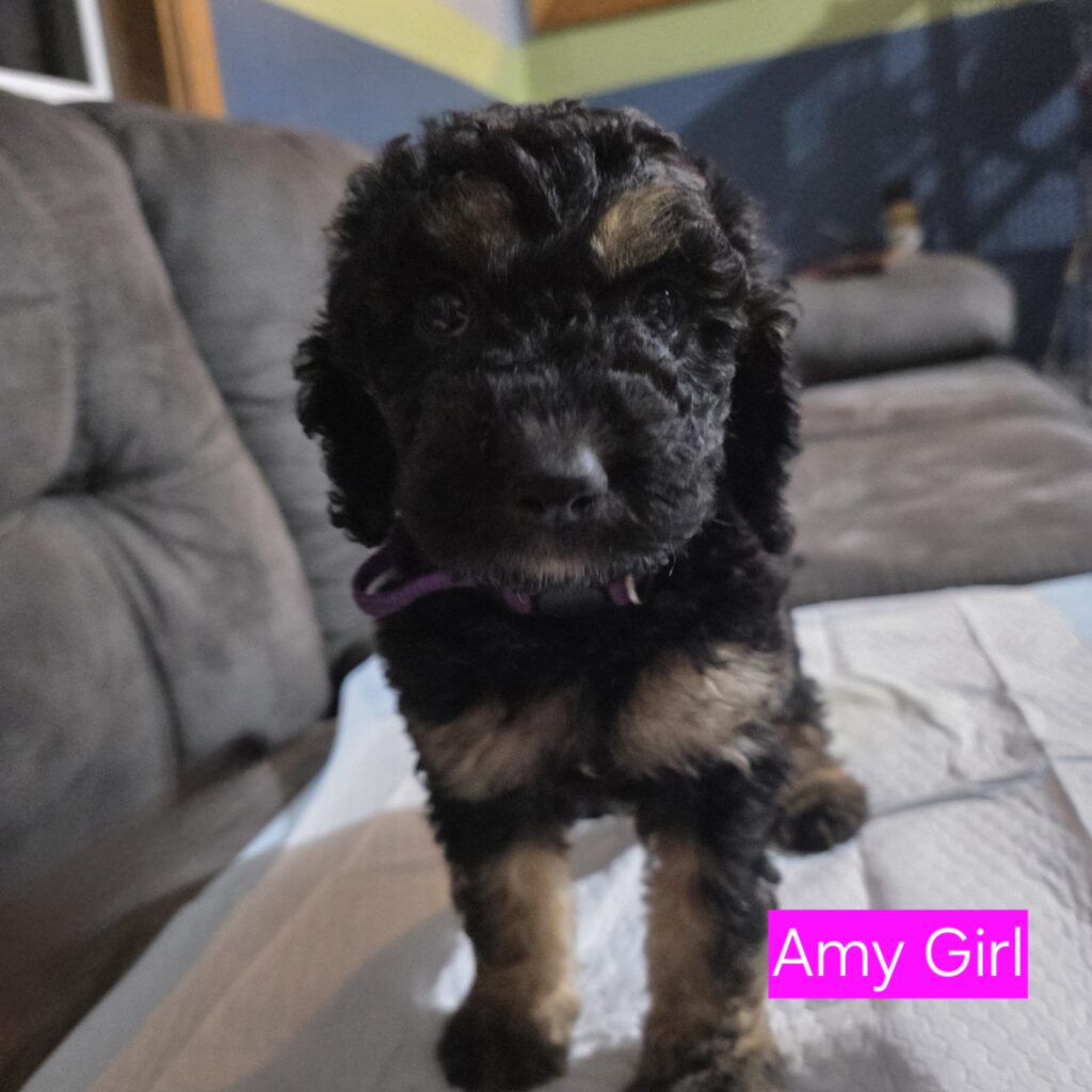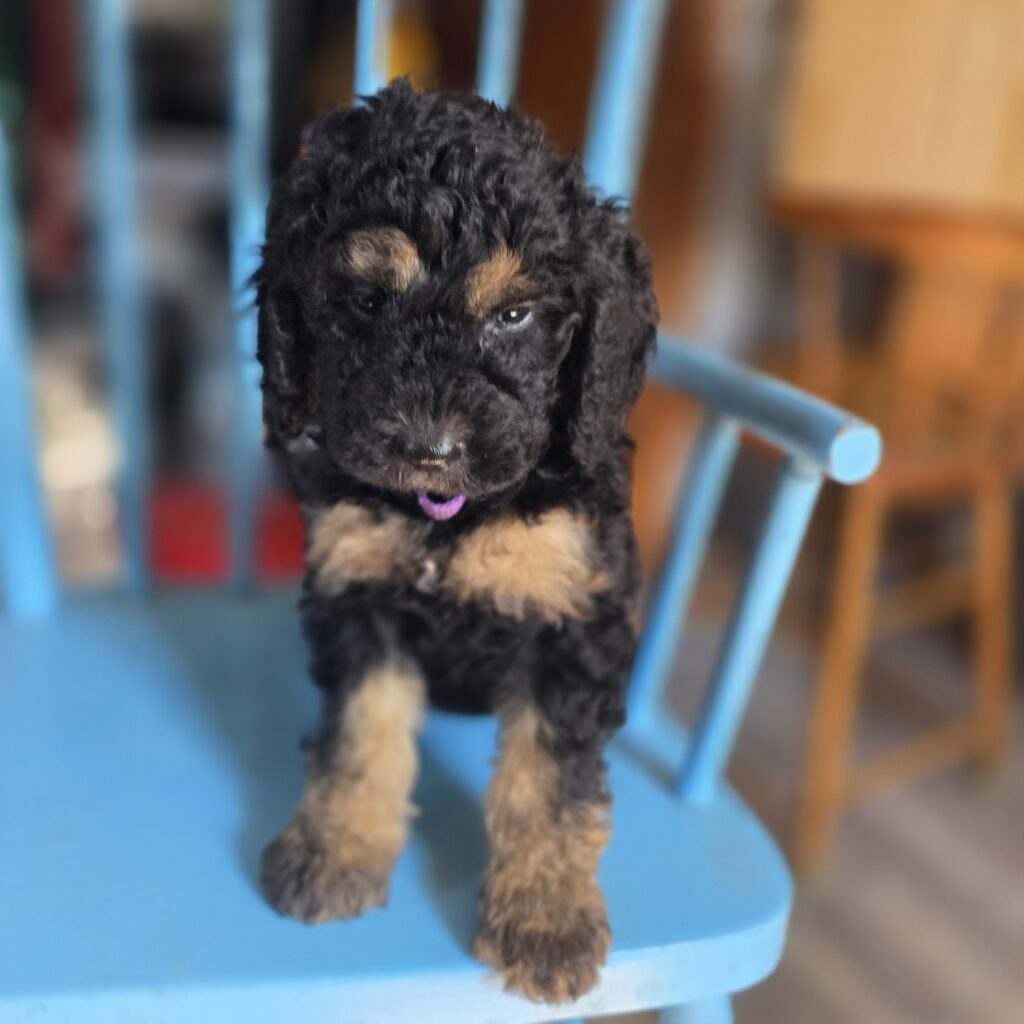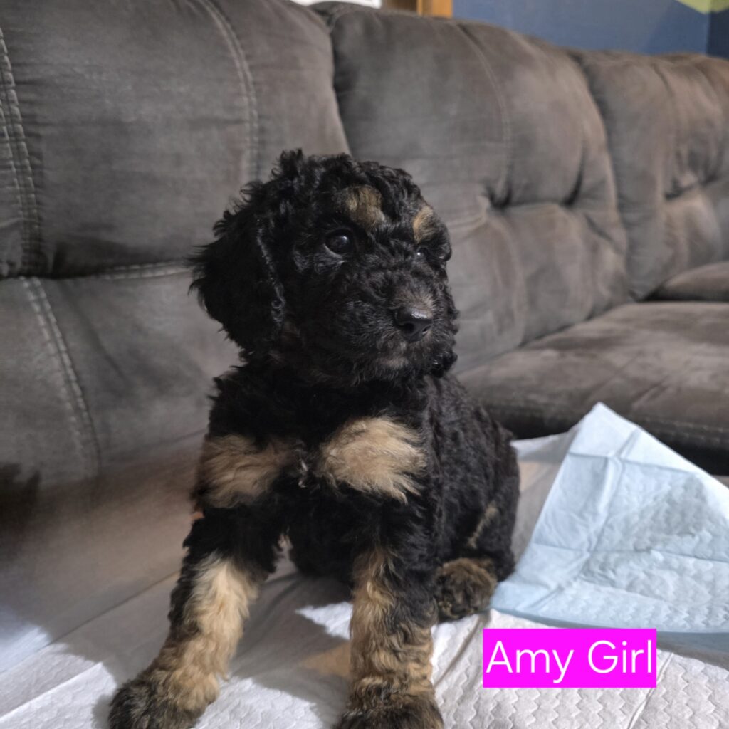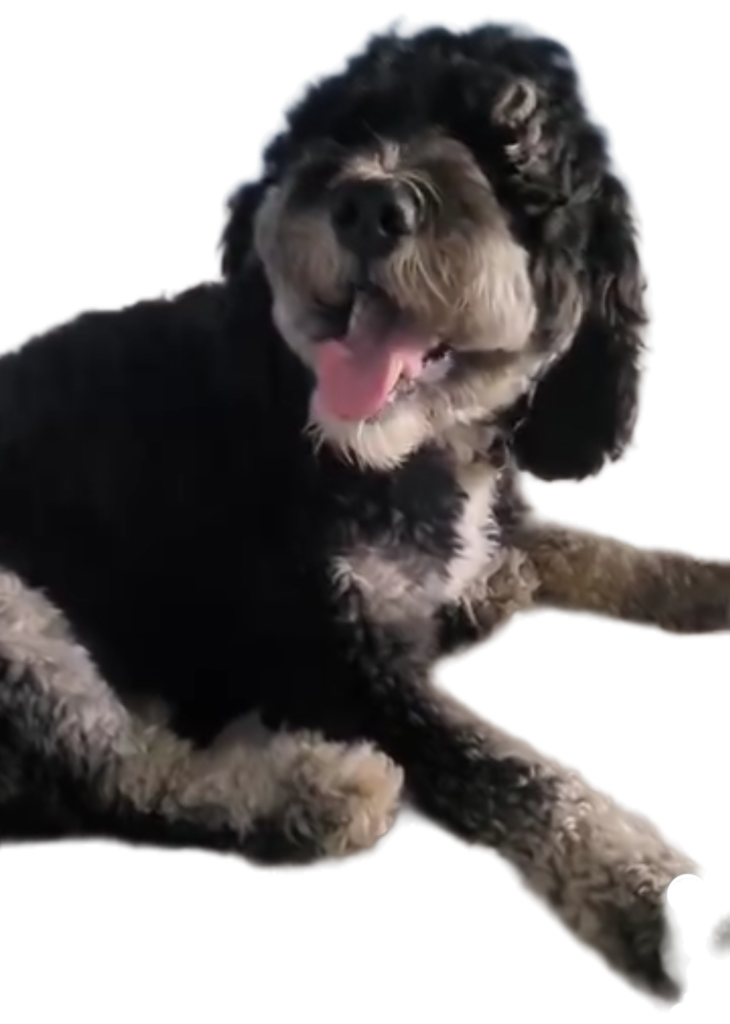 Mom is an F1 black and white Bernedoodle. Dad is a Mini Golden Doodle. Mom weighs 55 lbs dad is 16 lbs. Hypo Allergenic and Non Shedding.