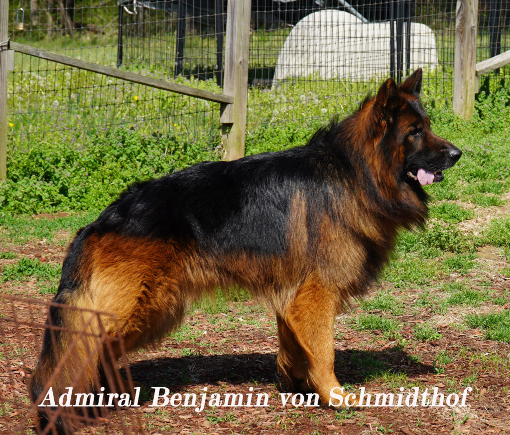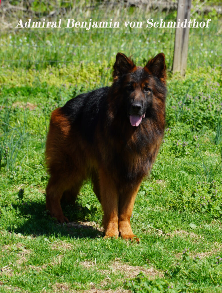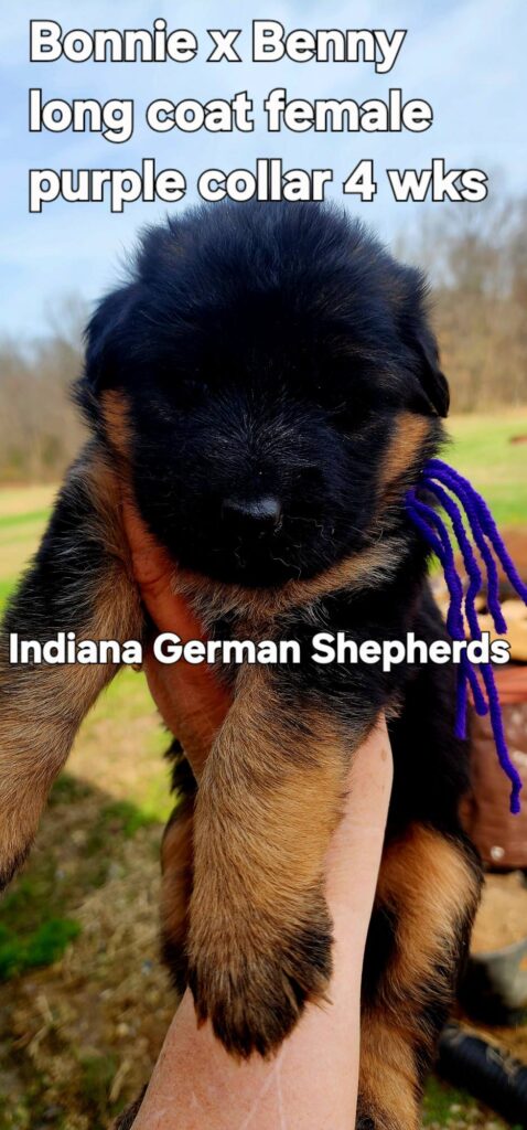 This is a long coat black/red west german showline bloodline german shepherd. She is going to have a stunningly rich black/red long coat that will turn people’s heads due to the beauty of the dog. The puppy will come with full AKC registration and guarantee for hips and elbows. The puppy will be vet checked and cleared, have appropriate vaccinations and be dewormed x4. The sire is Admiral Benjamin von Schmidthof (son of VA Bruce von Cohinor) and the dam is Bonnie von Schmidthof (daughter of VA Ursus vom Welsetal). We have done this combination in the past and the pups have turned out stunning which is why we repeated this mating. These pups will be ready for their new homes 4/18/26. Contact us at 812-499-5257 to schedule an appointment to see these puppies. You can see pictures of parents at www.gsdpups4sale.com.