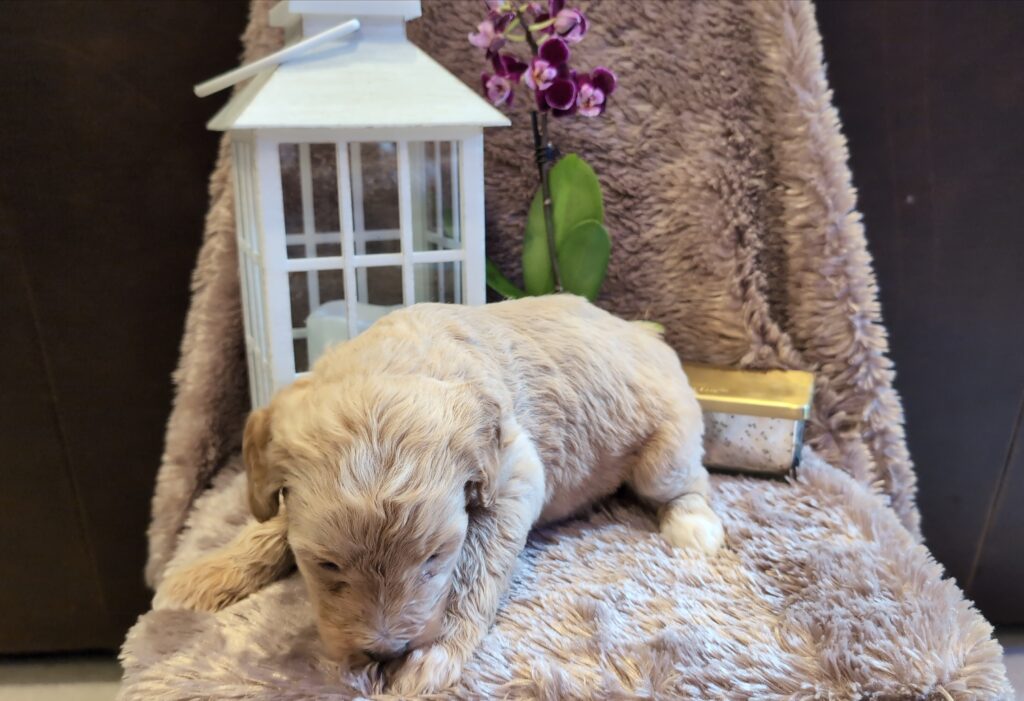 Mom is a first generation tricolor Bernedoodle (60lbs) and dad is a blue merle Standard Poodle (50lbs). Puppies are guaranteed not to shed. They are raised around children and other dogs. All puppies go home at 8 weeks with all current vaccinations, deworming, and dew claws removed. Ready to go home November 18, 2025.