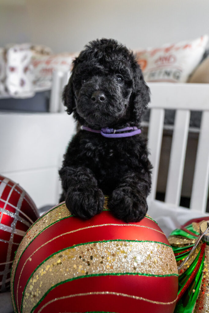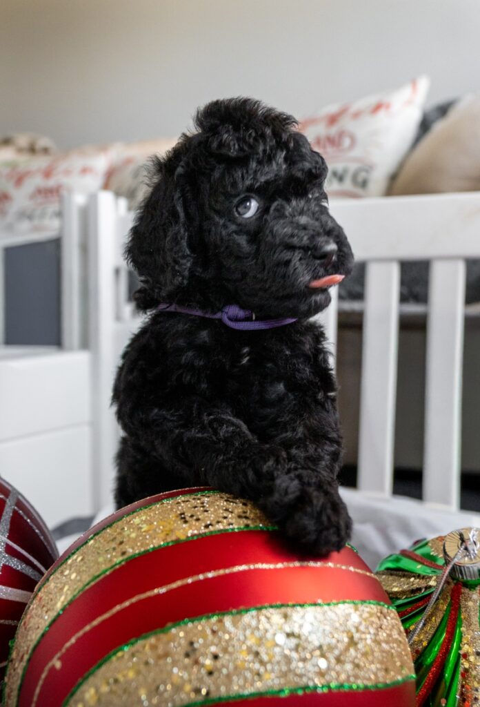 Joys deep black coat shimmers with a soft sheen she is Hypoallergenic, non-shedding. has a calm, loving spirit and an old-soul sweetness that draws everyone in. Whether she’s quietly cuddled up or wagging her tail in excitement, Joy lives up to her name in every way.