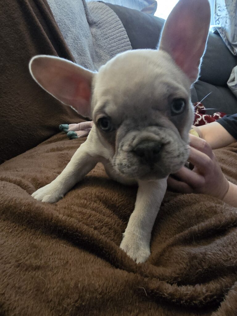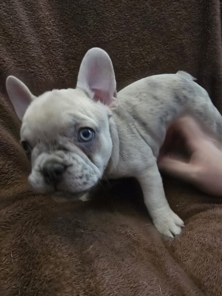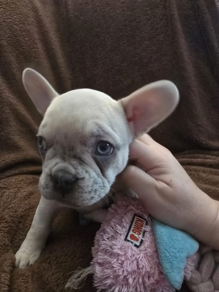 Wednesday is a cuddly, high energy Lilac Merle Female Frenchie. She has 3 rounds of dewormer and 1st round of shots Ready for her forever home!