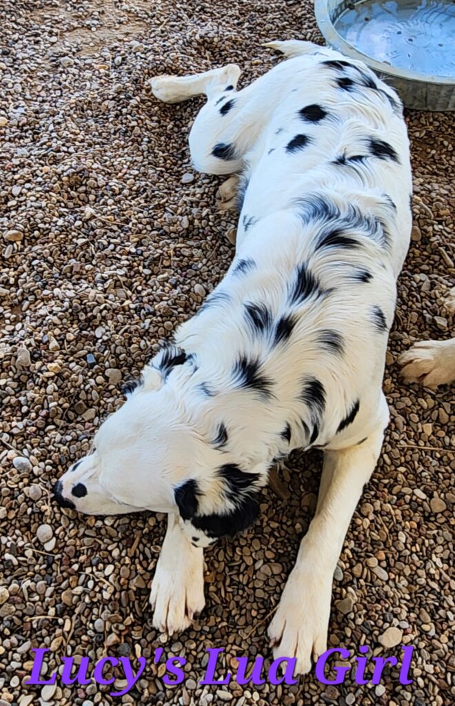 Comes with registration papers, shot and deworming schedule-Neo Par shot given at two weeks of age, 1st puppy shot given by vet at six weeks check-up, has had all four puppy shots, dewormed every two weeks for three consecutive days beginning at two weeks of age with Panacur till 8wks then monthly, baer hearing test results-bilateral, hyperuricosuria test results-lua, coat length test results. Canton, Tx. Firewife Puppies