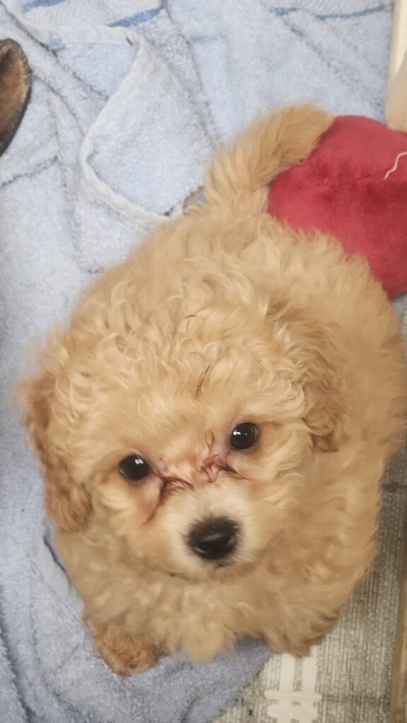 This sweet boy is expected to be an excellent companion and playmate. Anticipated to reach a mature weight of 10-12 pounds, or potentially less, he is projected to be available for adoption around the third week of October. He will have received two rounds of puppy vaccinations and deworming treatments. The adoption package will include a small bag of food, a blanket, a toy, and a health record folder.