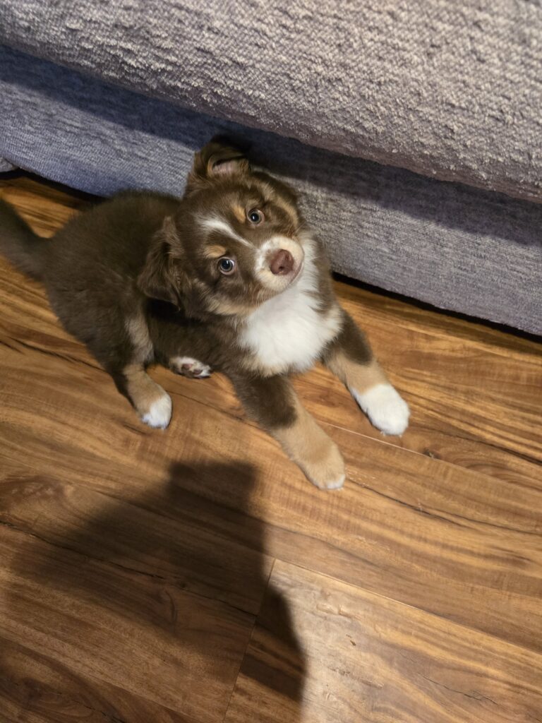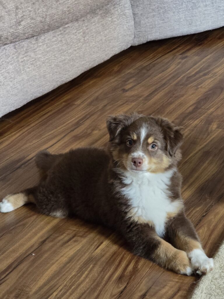 Sheldon is a loving 13 week old mini australian shepherd. He has been dewormed and is up to date on his vaccines. Both parents are on site and ACA and AKA registered.